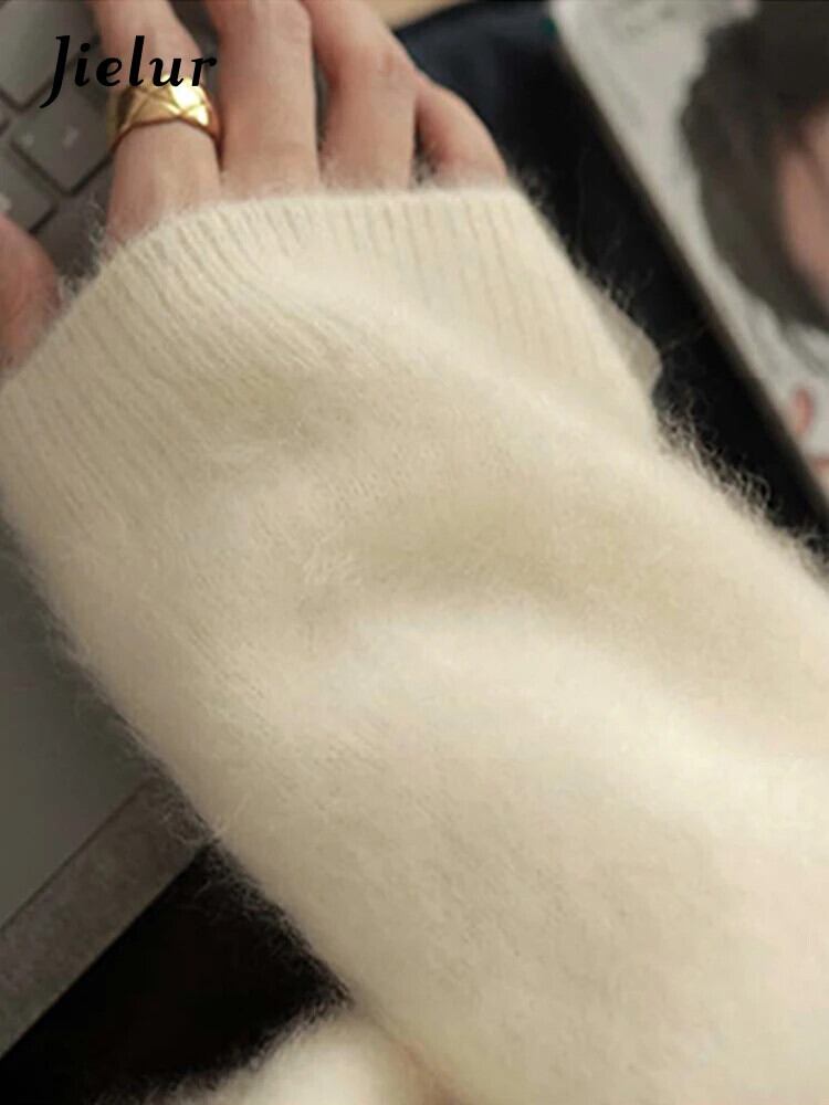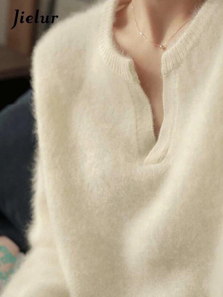 送料無料 Jielur 秋無地スリム V ネック女性プルオーバー甘いプルオーバー女性オフホワイト黒ニットセーター ブラック 大人ガーリー スウィート キュート カジュアル オータム 秋物 Vネック ソリッドカラー AE1218878782356106369