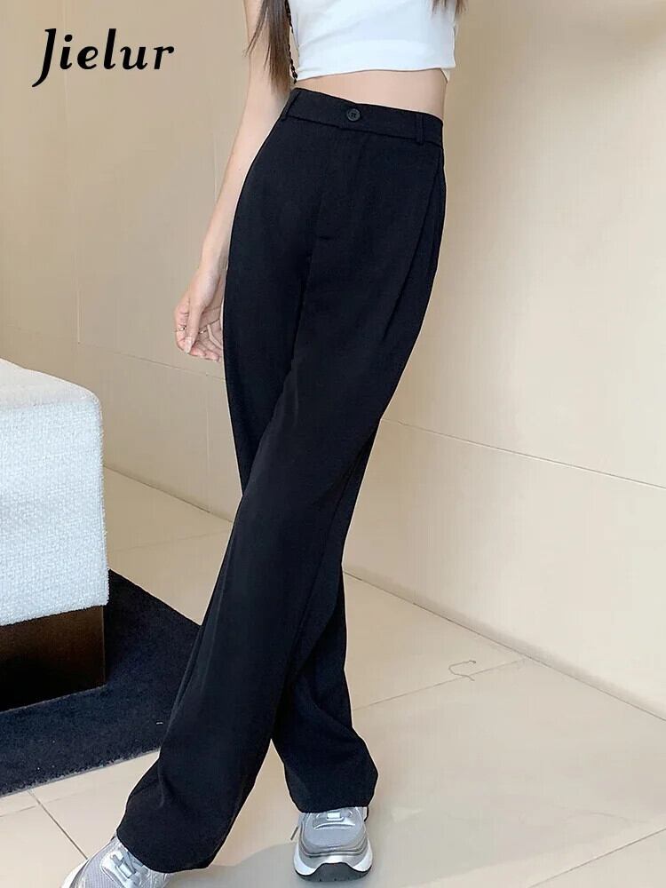送料無料 Jielur 夏無地スリム女性のパンツウエストルーズパンツ女性黒ダークグレーシンプルなベーシックパンツ ブラック サマー 夏物 ソリッドカラー AE12188787833068364378