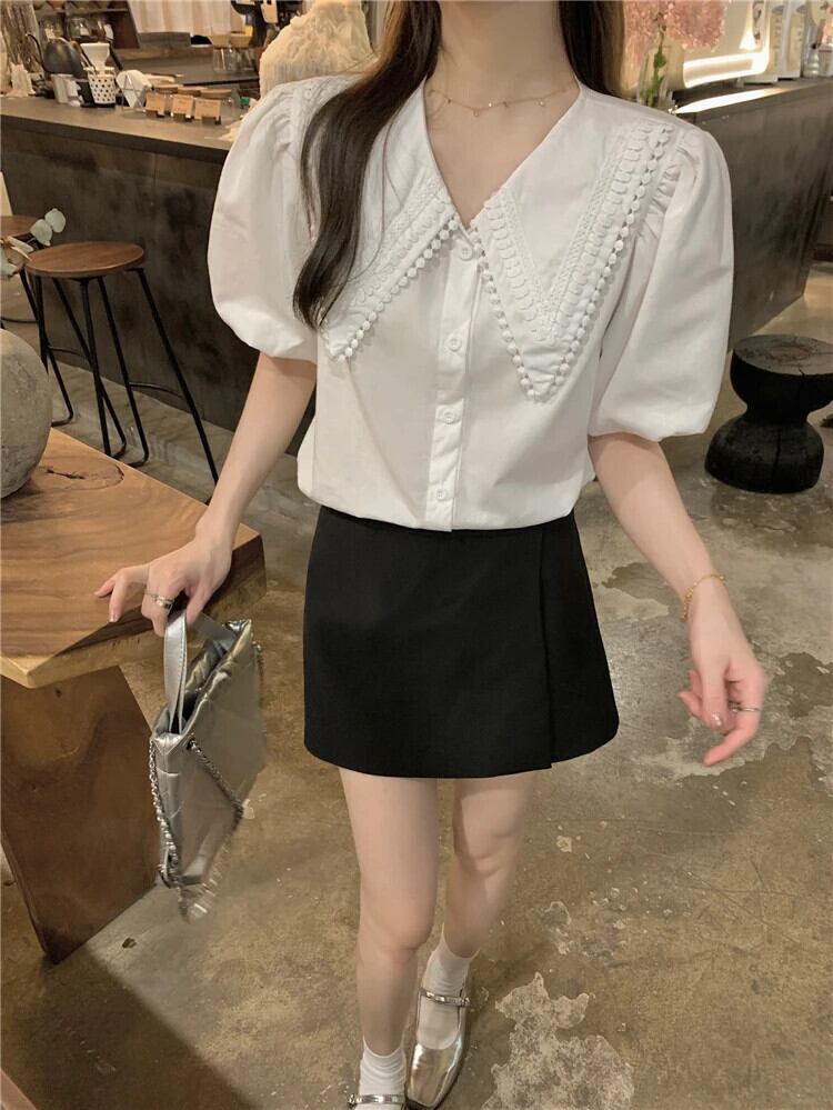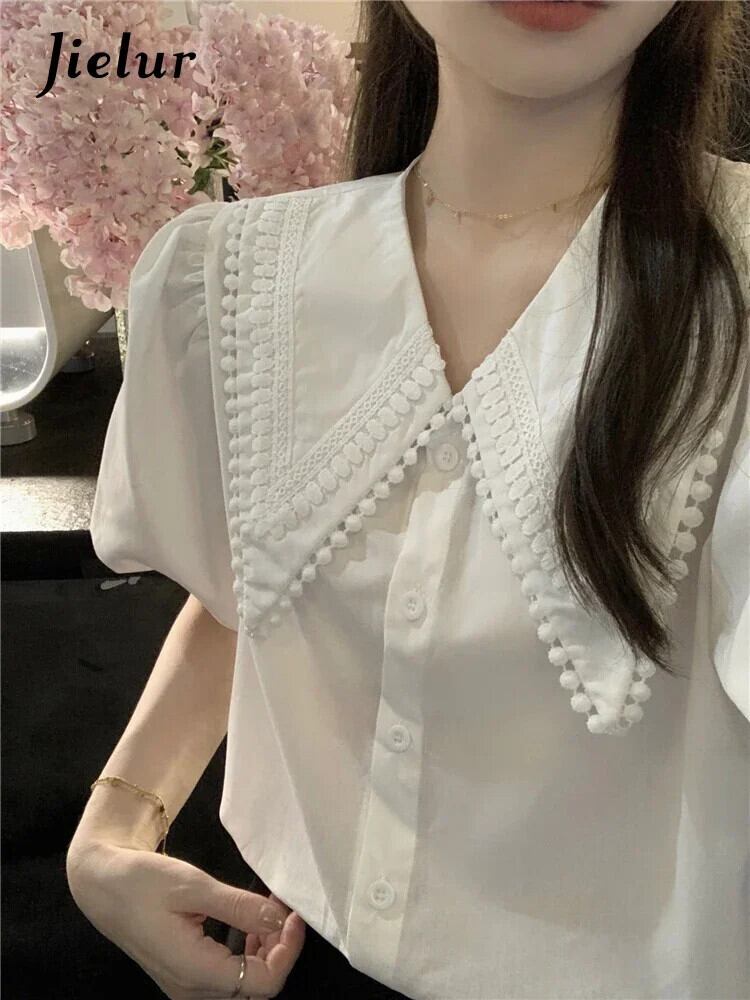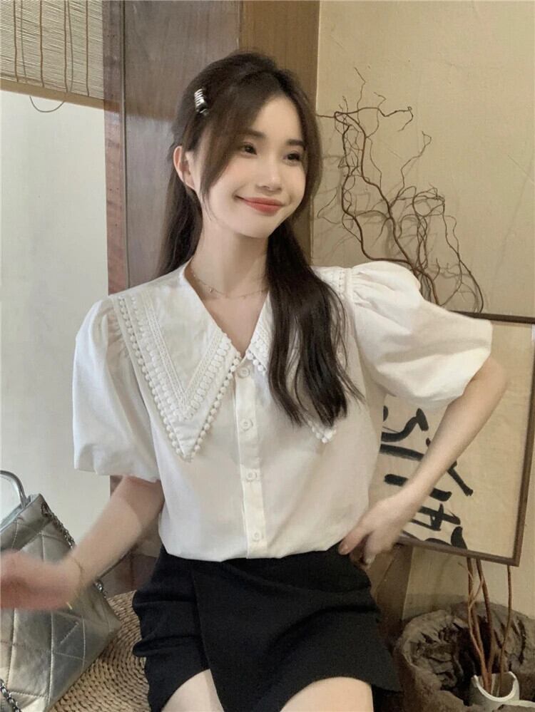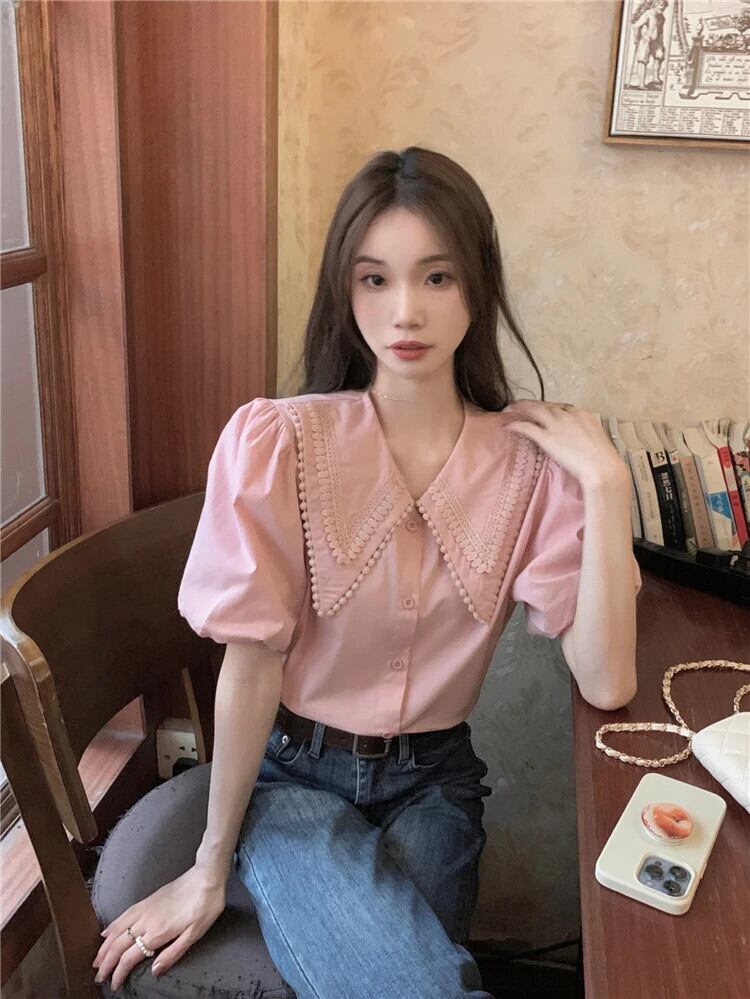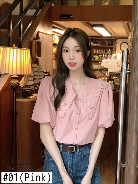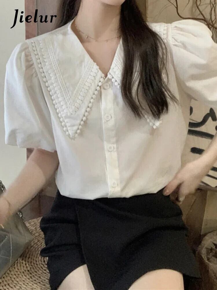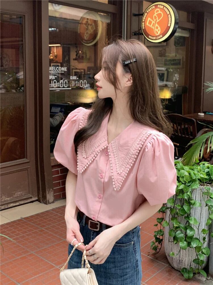 送料無料 Jielur 夏ソリッドカラーの女性のシャツスリムスイートシャツ女性ホワイトピンクシックなパフスリーブトップ 大人ガーリー スウィート キュート カジュアル サマー 夏物 AE12188787835801913493