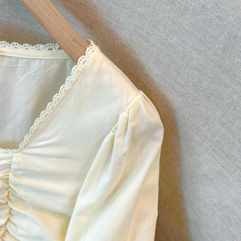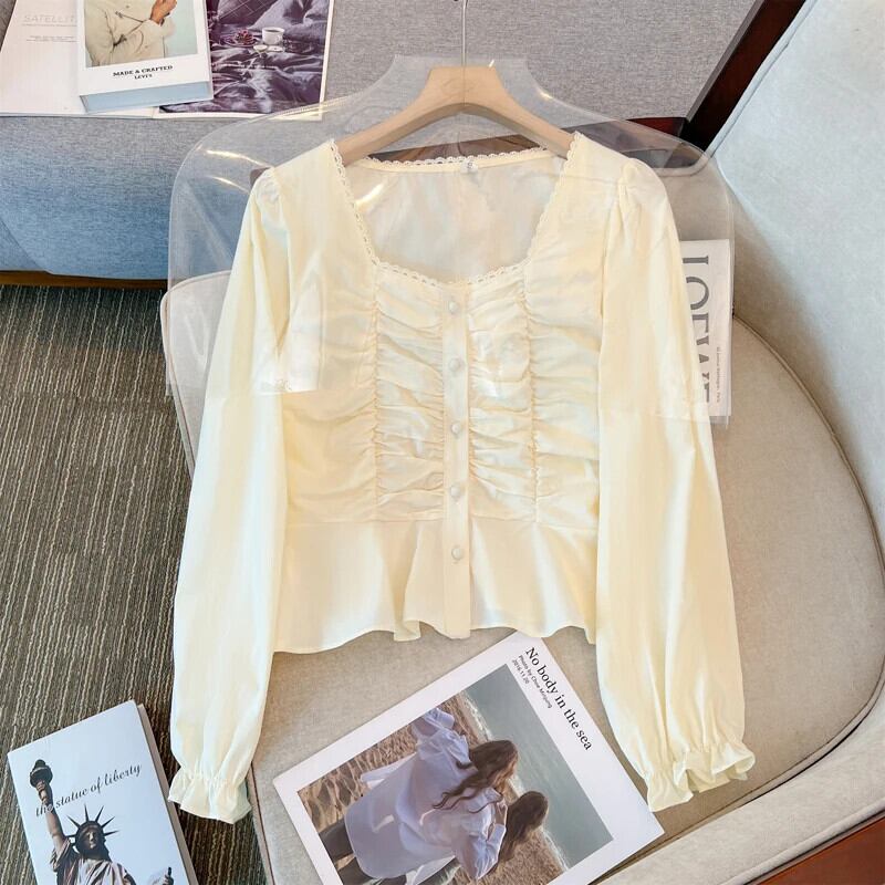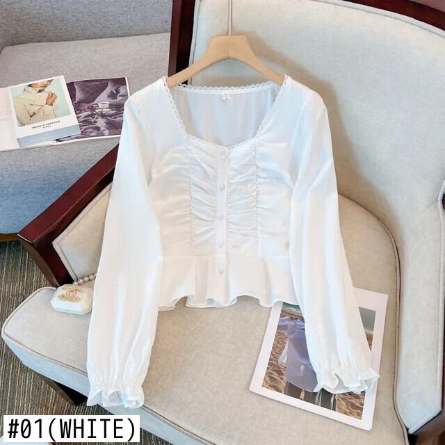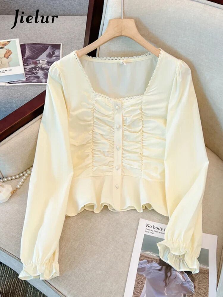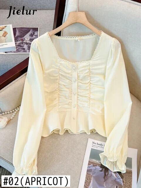 送料無料 Jielur 春フレンチソリッドカラーの女性のブラウススリム甘い長袖ブラウス女性アプリコットホワイトルーズシンプルなトップ ロング 大人ガーリー スウィート キュート カジュアル スプリング 春物 AE12188787876466530052