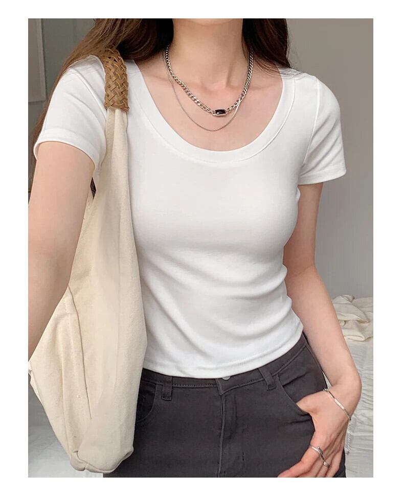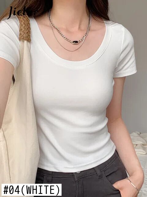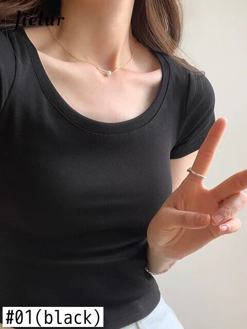 送料無料 Jielur 夏無地 O ネック女性の Tシャツスリムトップ白黒緑アプリコットピンク半袖女性 ショート ホワイト ブラック ハーフスリーブ サマー 夏物 Oネック ソリッドカラー グリーン AE1218878785648899769