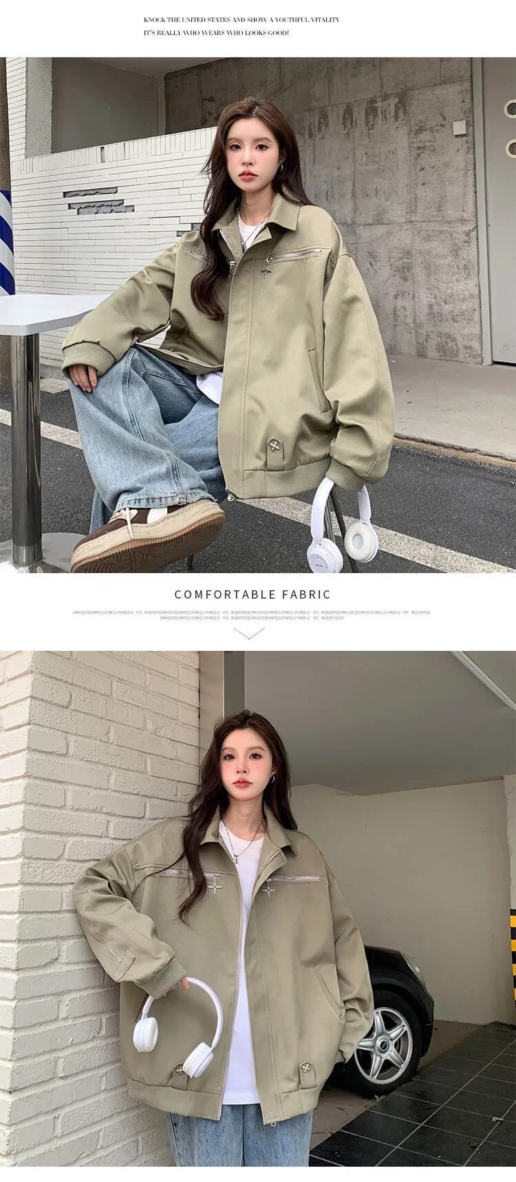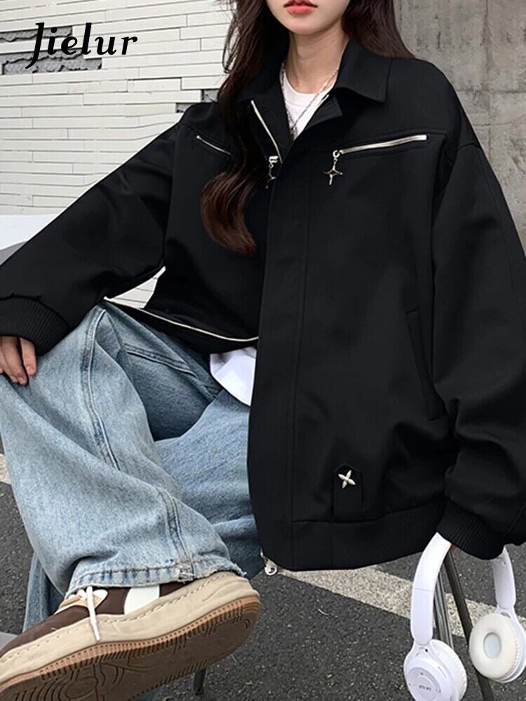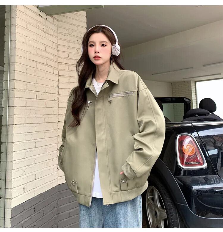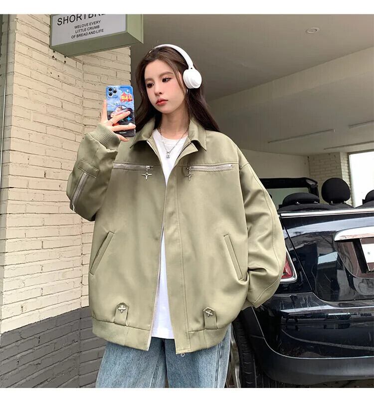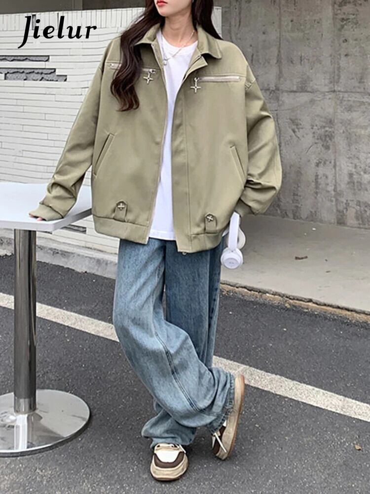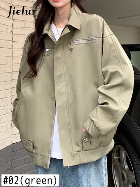 送料無料 Jielur アメリカンヴィンテージ Ins ジャケット女性秋ルーズ Chicly ジャケットグリーンブラックストリートトップ女性 オータム 秋物 ビンテージ AE12188787861869010198