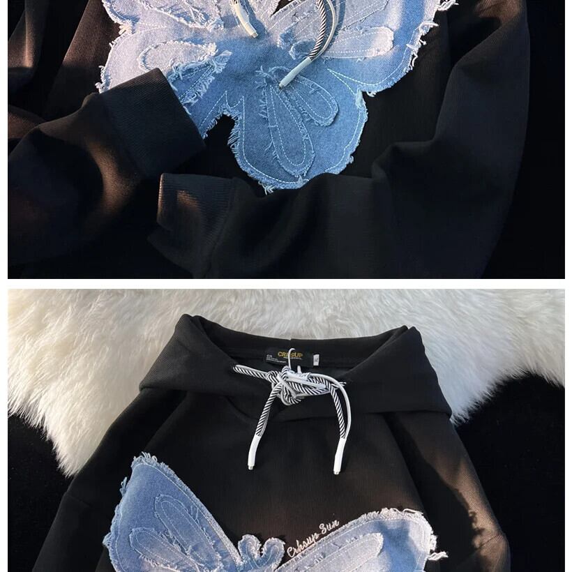 送料無料 Jielur フード付き巾着シックな蝶パーカーインベーシックルーズ秋長袖女性パーカー ロング オータム 秋物 AE12188787836222706642