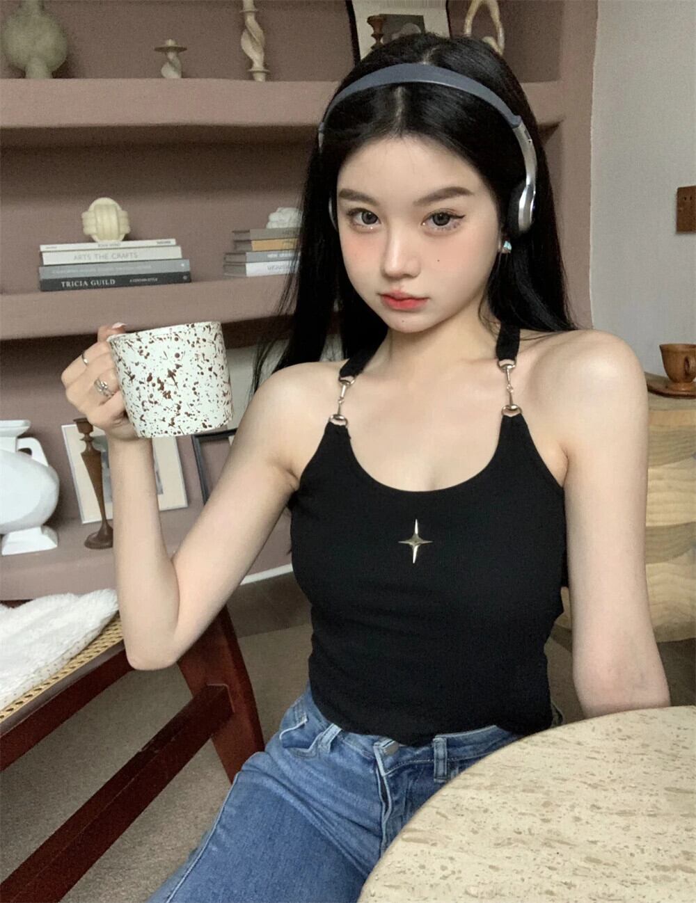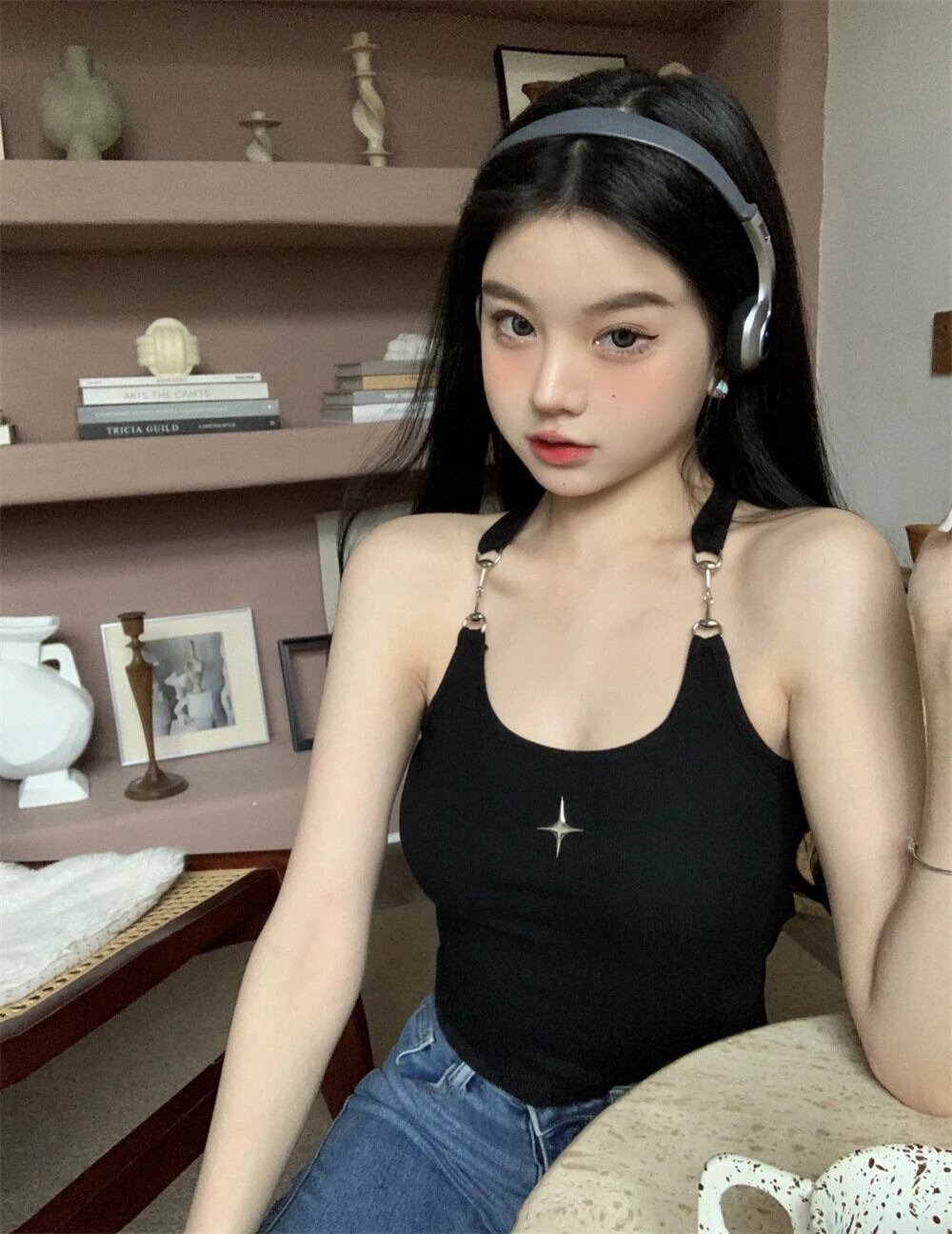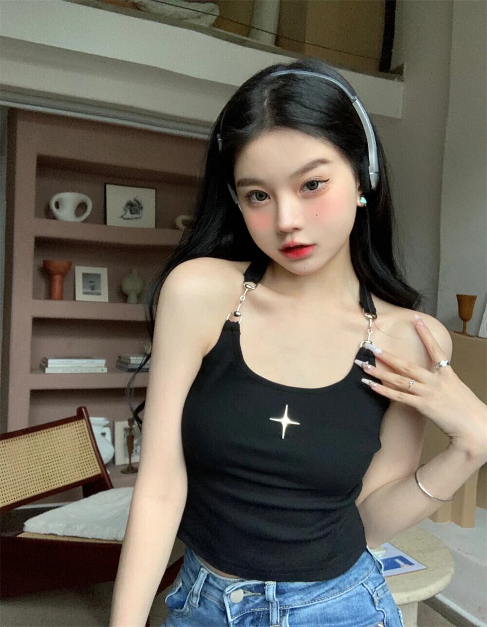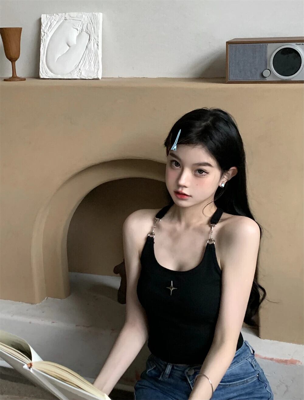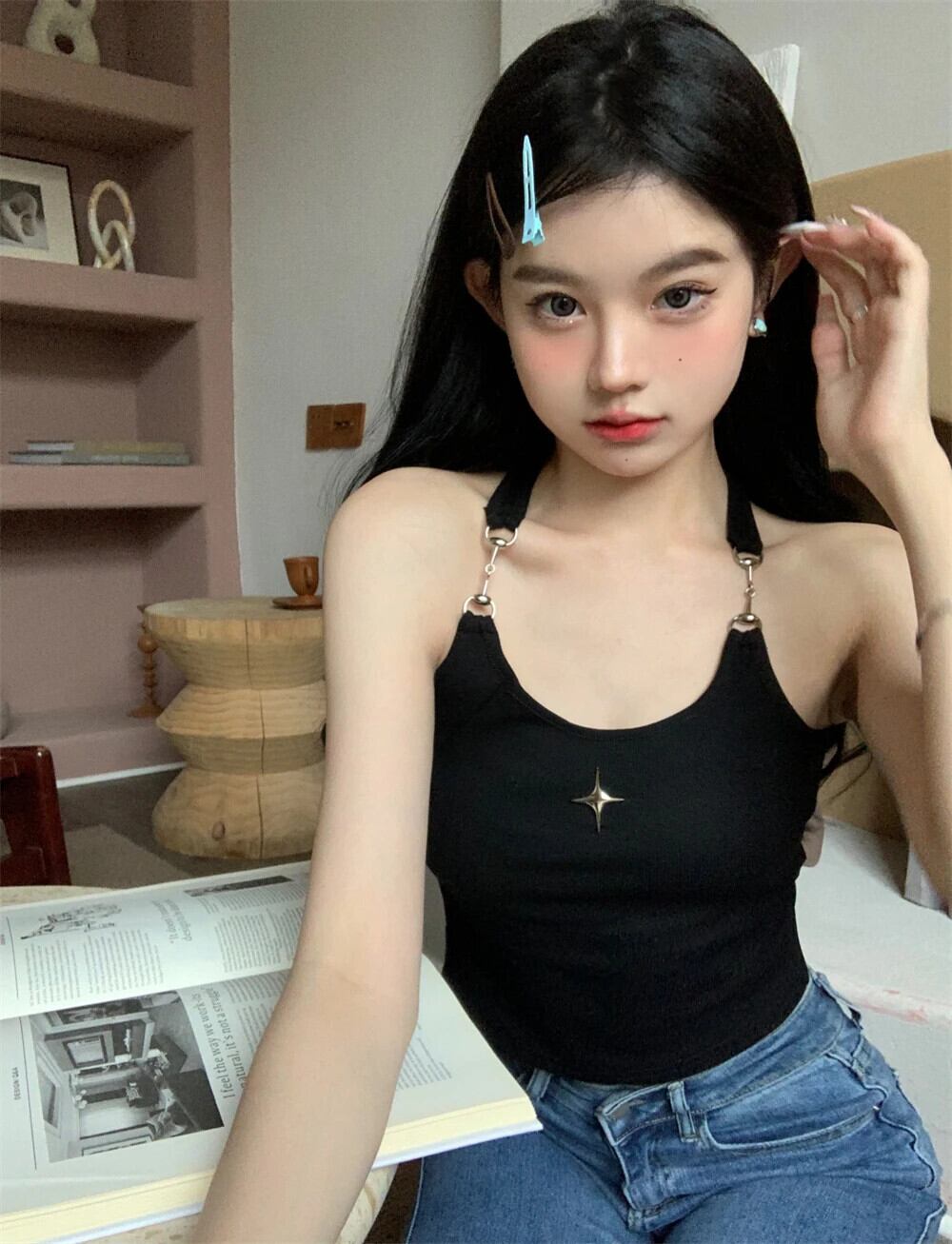 送料無料 Jielur 夏無地セクシーなキャミソール女性シックなスリムアメリカンホルター女性キャミソール黒若いノースリーブトップ ブラック サマー 夏物 ソリッドカラー AE1218878789151653276