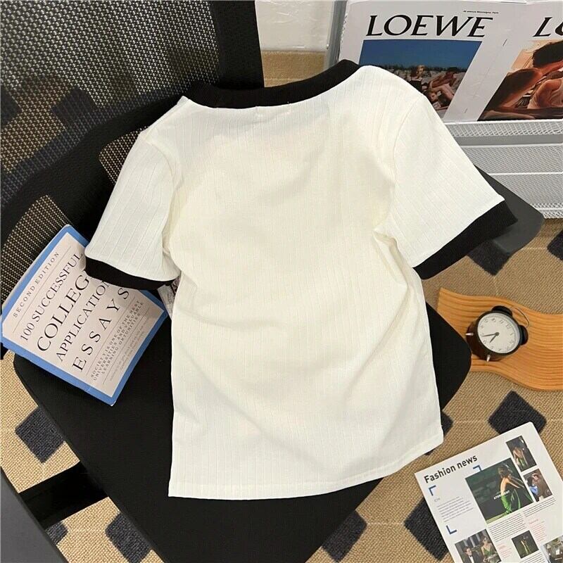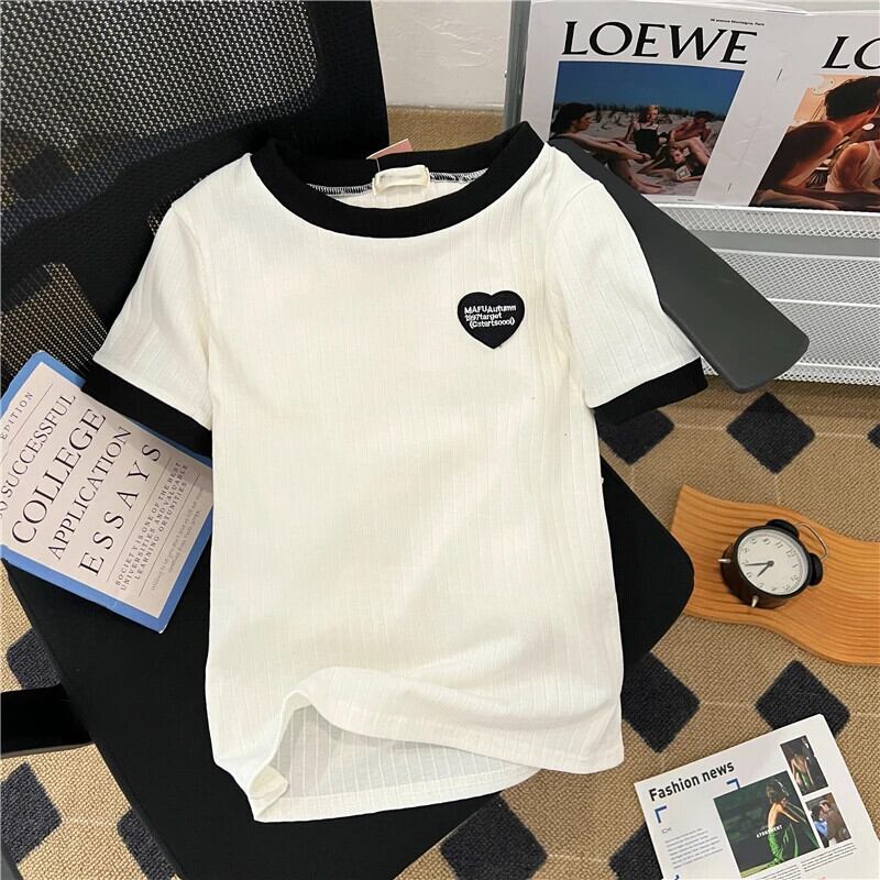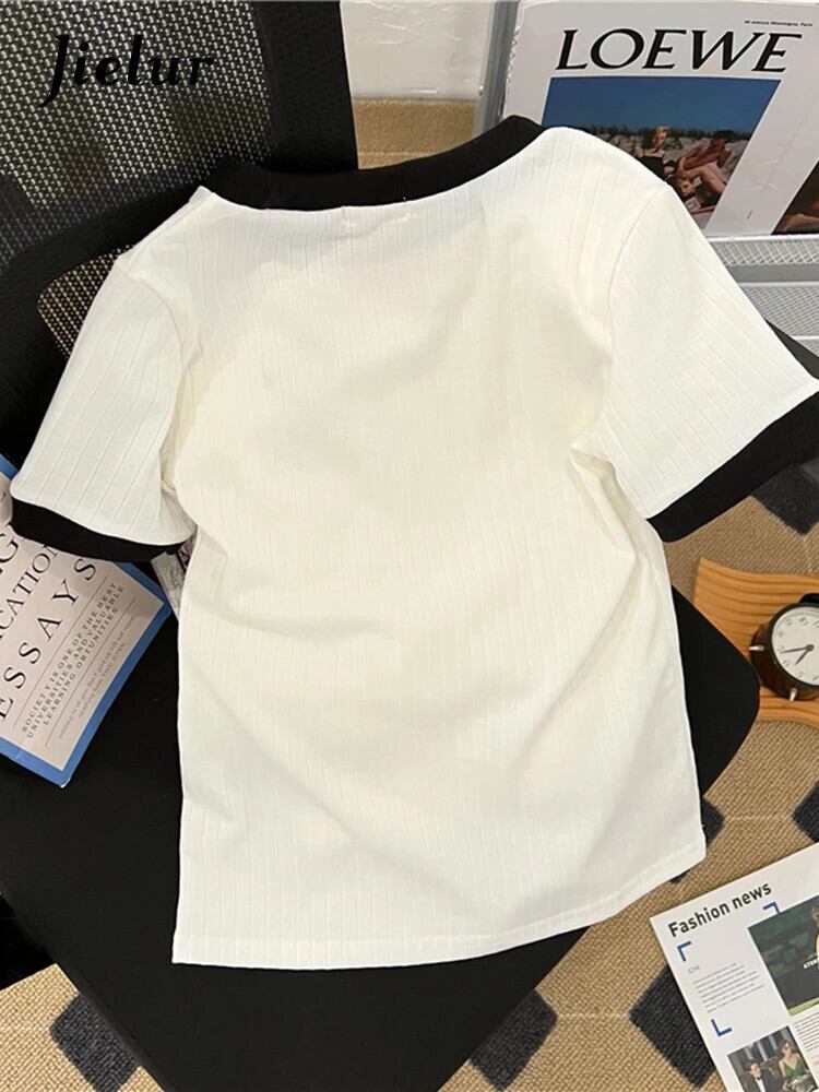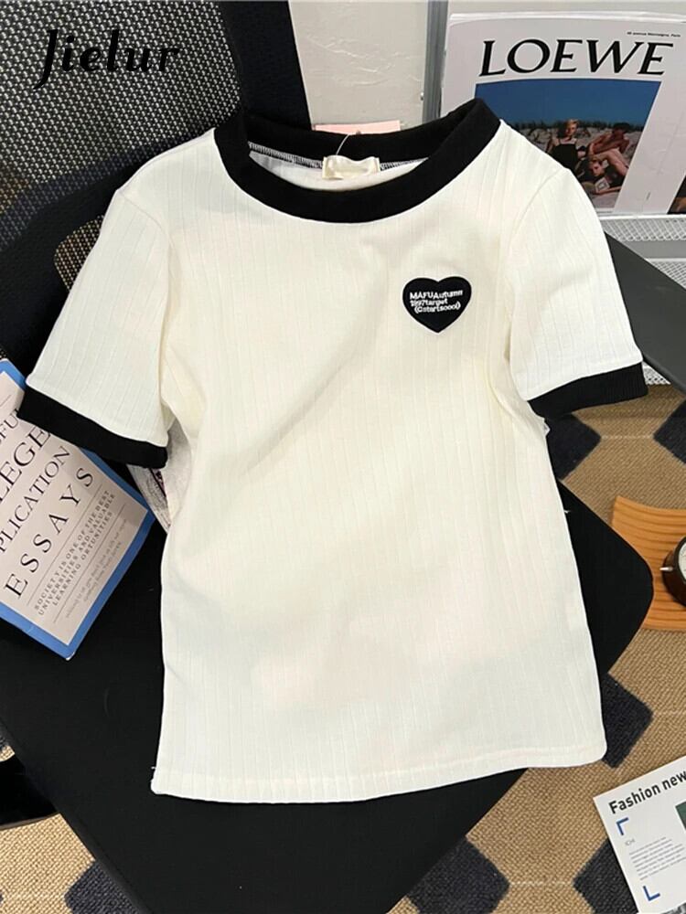 送料無料 Jielur ピット刺繍レディース Tシャツ半袖白 Tシャツ夏 O ネックスリムベーシック Tシャツトップスガールズ S-L ホワイト サマー 夏物 Oネック AE12188787824139549