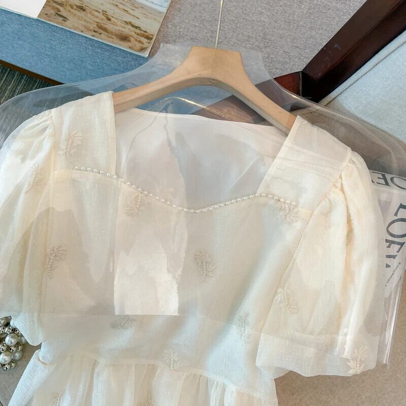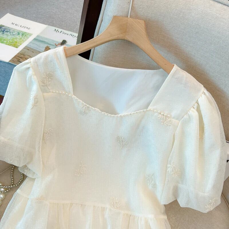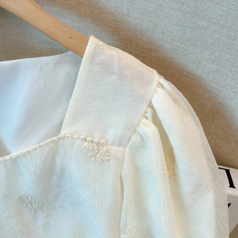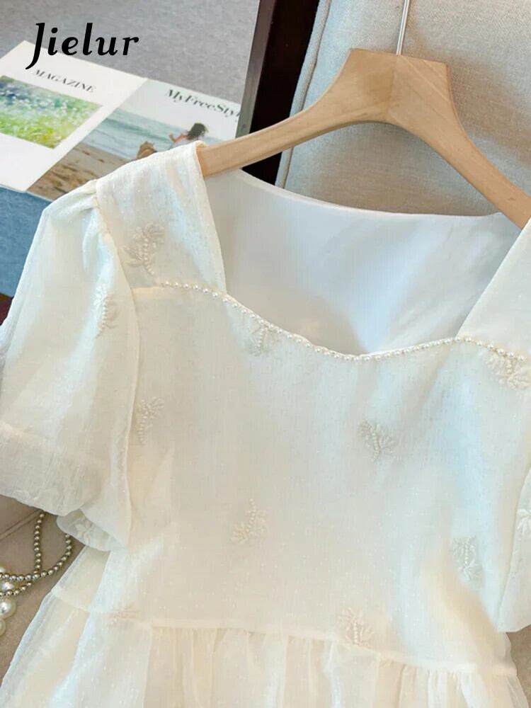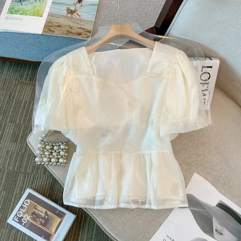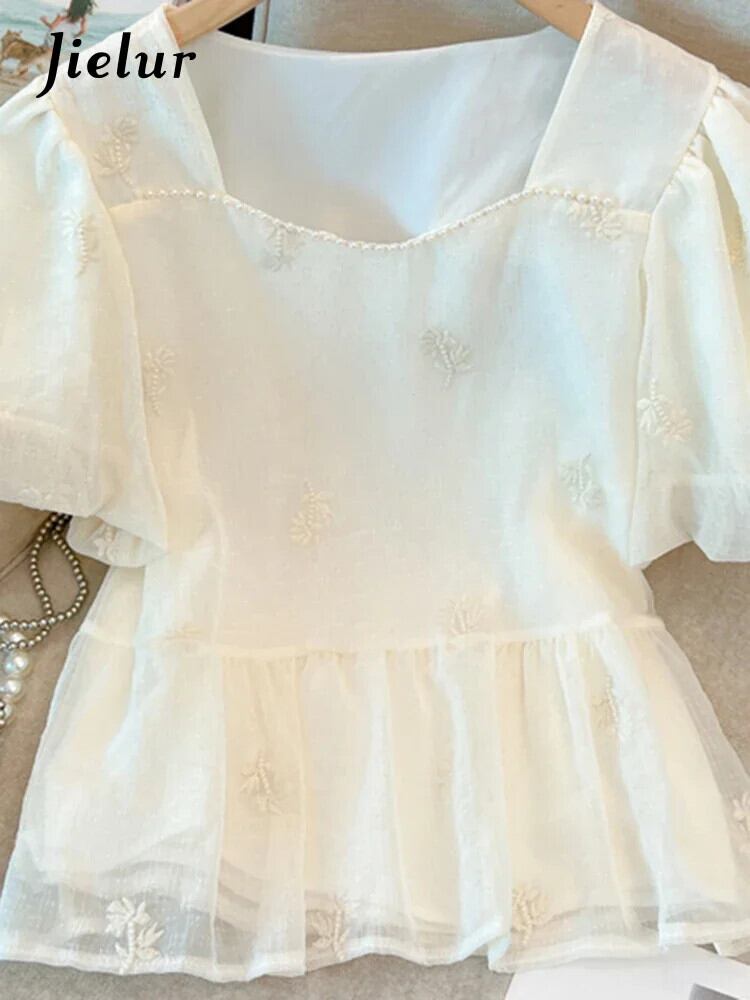 送料無料 Jiellur 甘いスクエアネックパフスリーブ女性ブラウス夏シフォン半袖ブラウス固体ルーズトップ ショート ハーフスリーブ 大人ガーリー スウィート キュート カジュアル サマー 夏物 ソリッドカラー スクウェア AE12188787855011809739