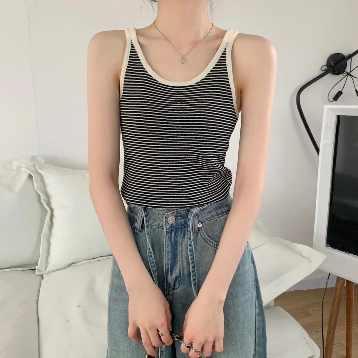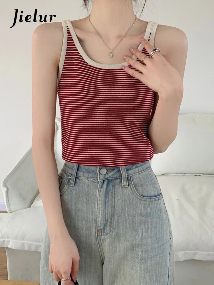 送料無料 Jielur 夏スリム女性のキャミソールコントラストカラーサイドストライプニットノースリーブタンク黒紫赤ベーシックシンプルなキャミソール レッド ブラック サマー 夏物 パープル AE12188787840130829331