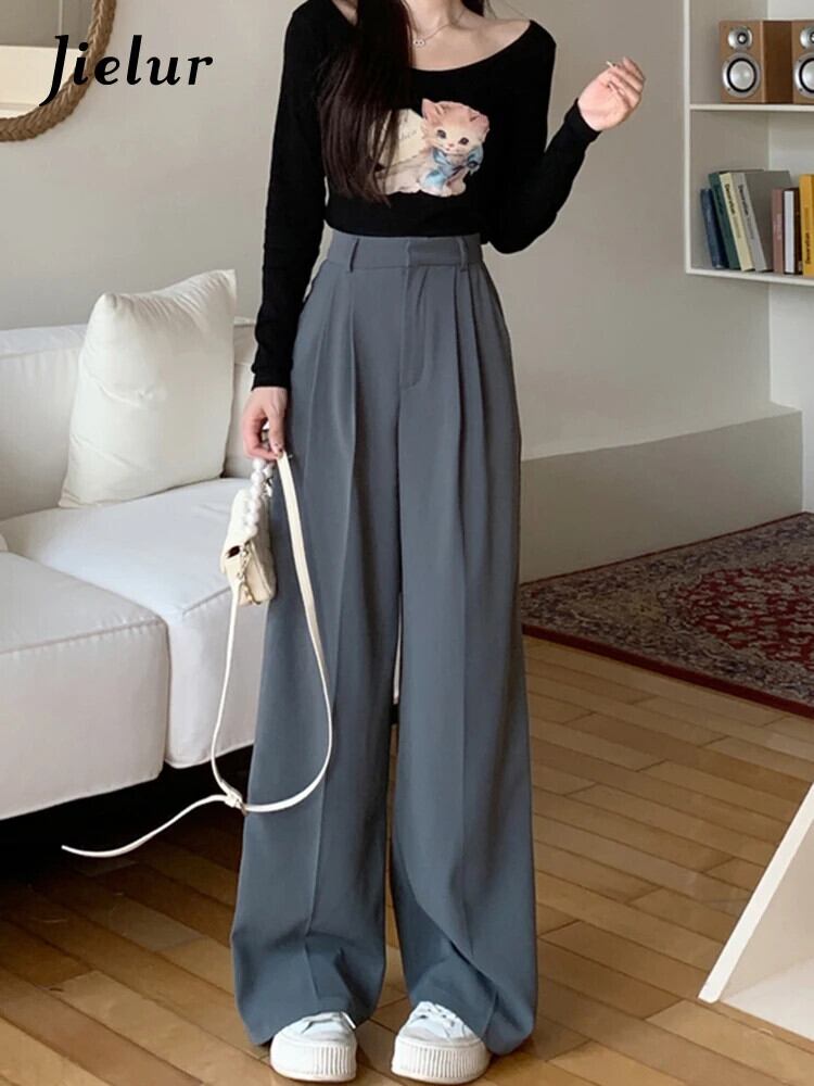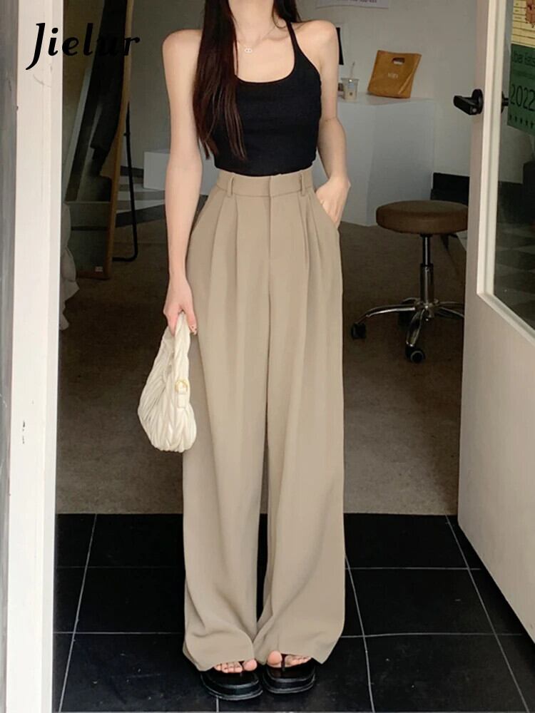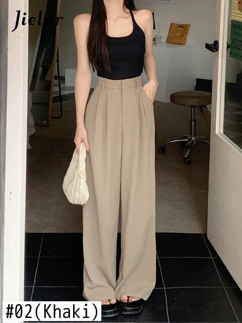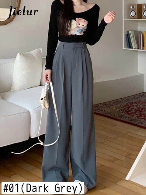 送料無料 Jielur 春ウエストスリム若い女性のパンツ無地ルーズシンプルなパンツカーキグレーベーシックパンツ女性 スプリング 春物 ソリッドカラー AE12188787827531693350