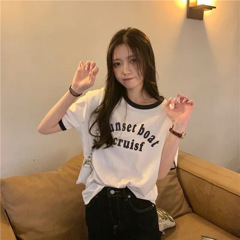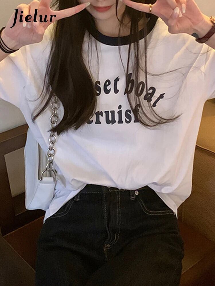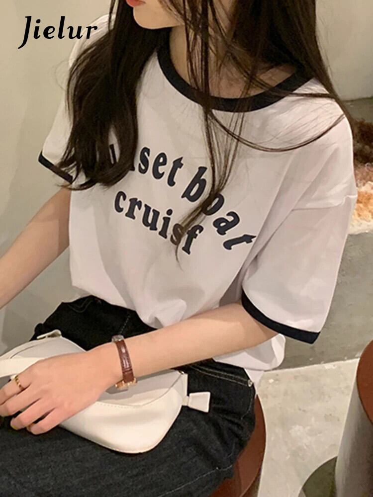 送料無料 Jielur 夏ルーズコントラストカラーの女性の Tシャツ Tシャツ女性ブラックネイビーストリート Chicly トップ サマー 夏物 AE12188787826952905460