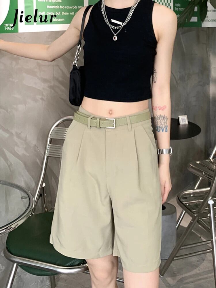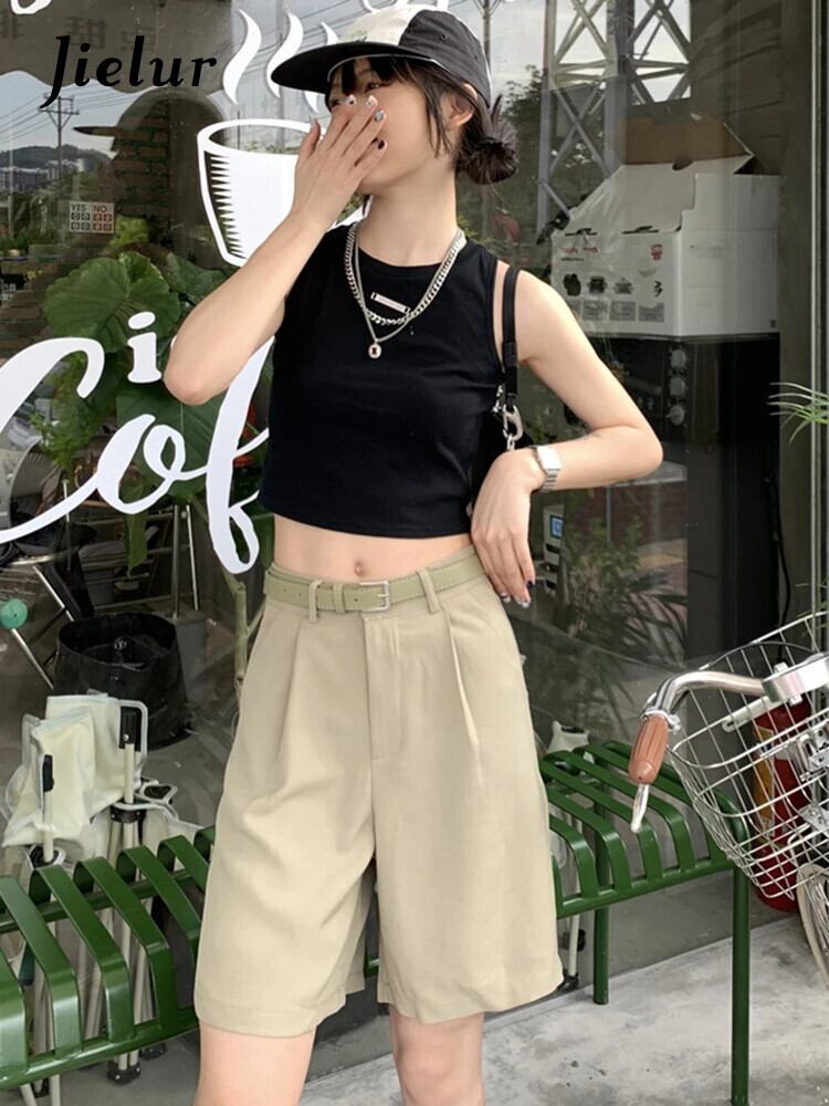 送料無料 Jielur 夏ルーズ女性のショーツ無地スリムショーツ Femlae 黒マスタードグリーンシンプルなベーシックパンツ ブラック サマー 夏物 ブルマー ソリッドカラー AE12188787854422989297