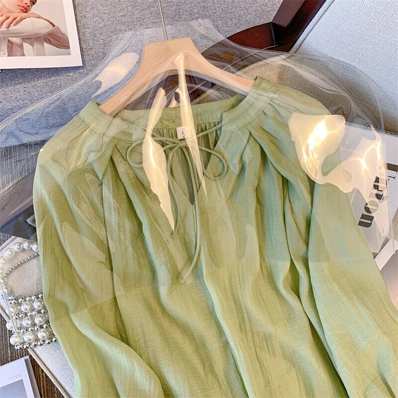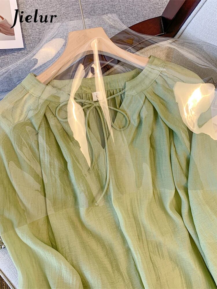 送料無料 Jielur 夏ヴィンテージスリム薄型女性ブラウス無地ルーズブラウスレースアップ V ネックベーシックブラウス サマー 夏物 Vネック ソリッドカラー ビンテージ AE12188787864146325596
