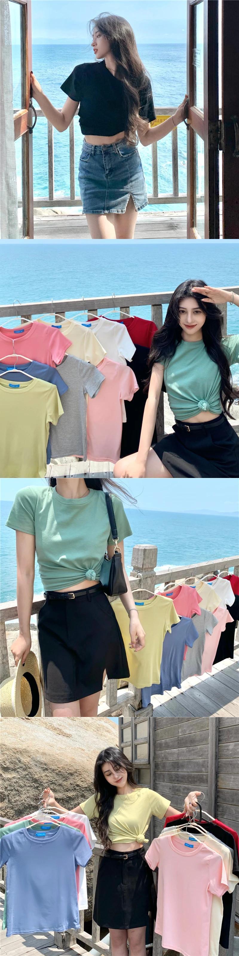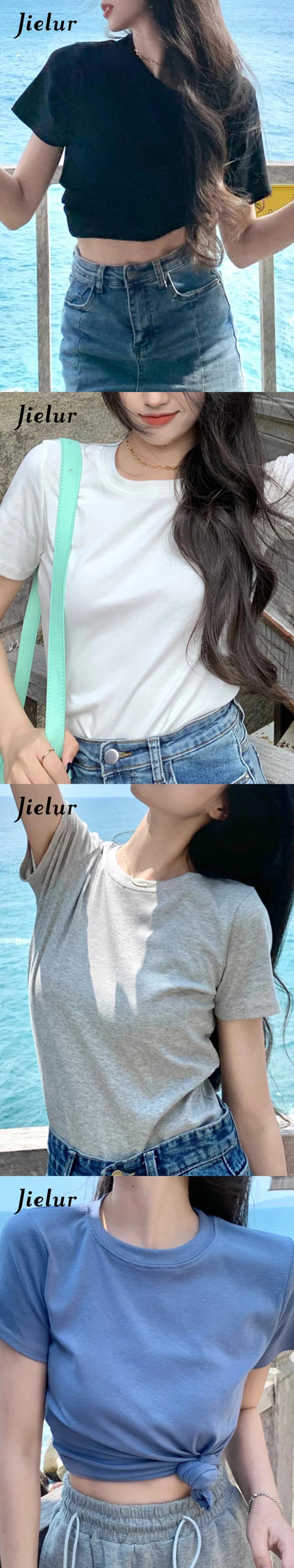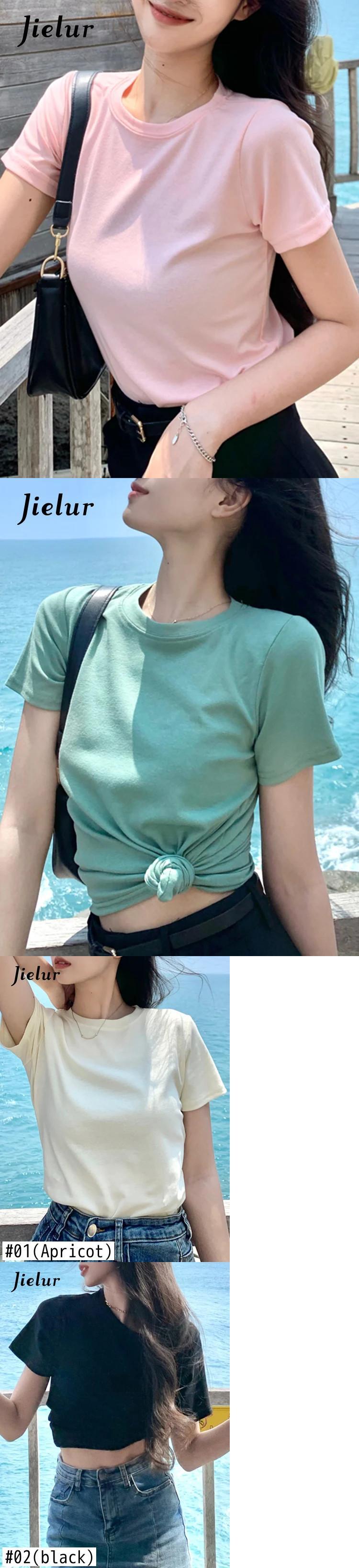 送料無料 Jielur キャンディーカラー半袖コットン Tシャツ女性 O ネックスリムベーシックトップ純粋な色イエローピンクグリーン Tシャツ ショート ハーフスリーブ Oネック ピュア AE12188787868816428087