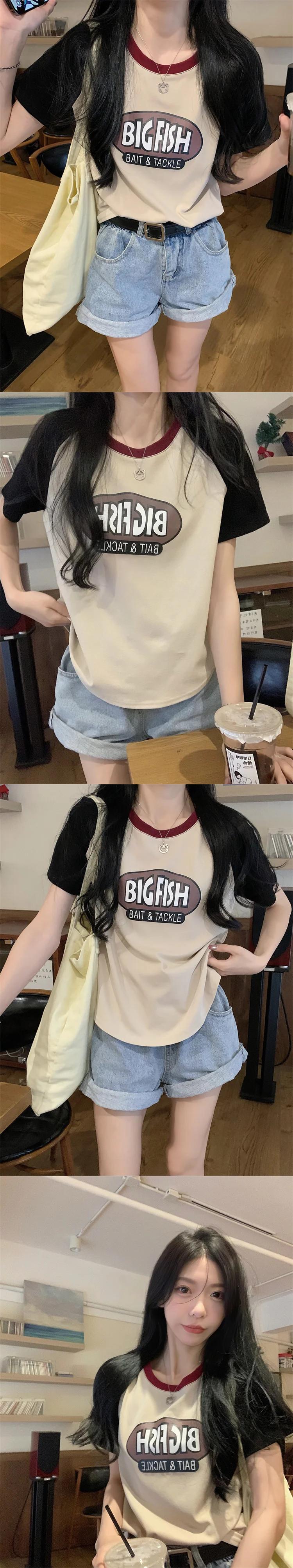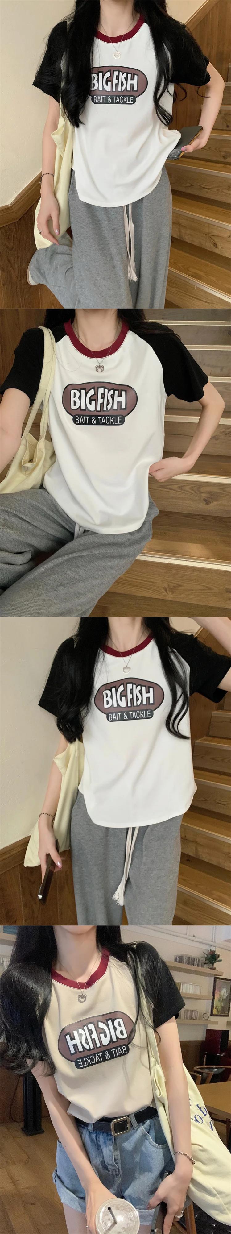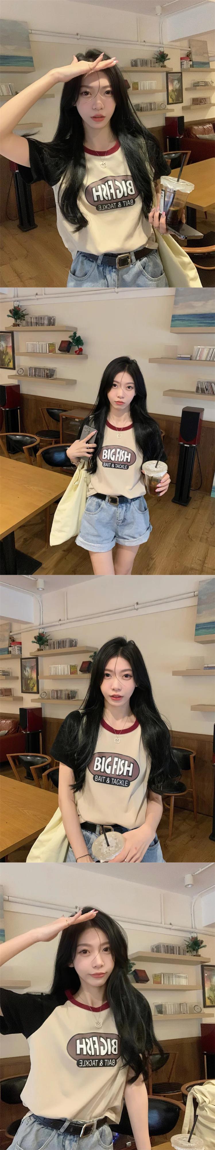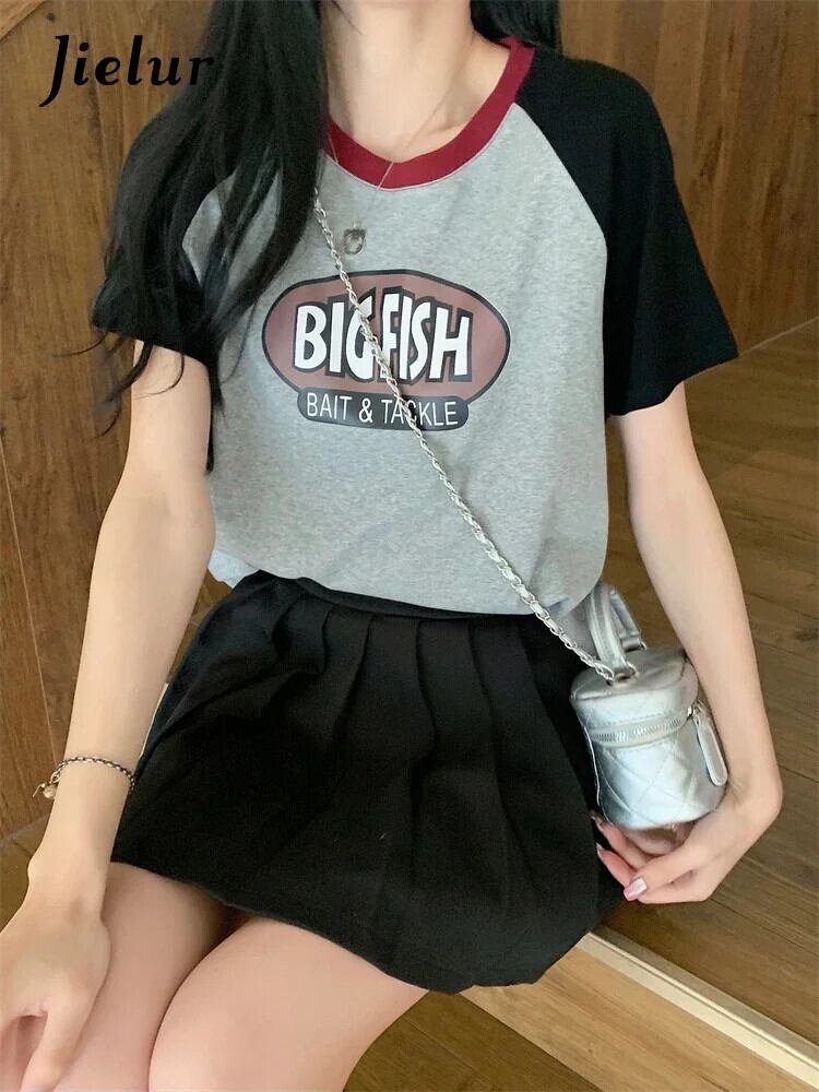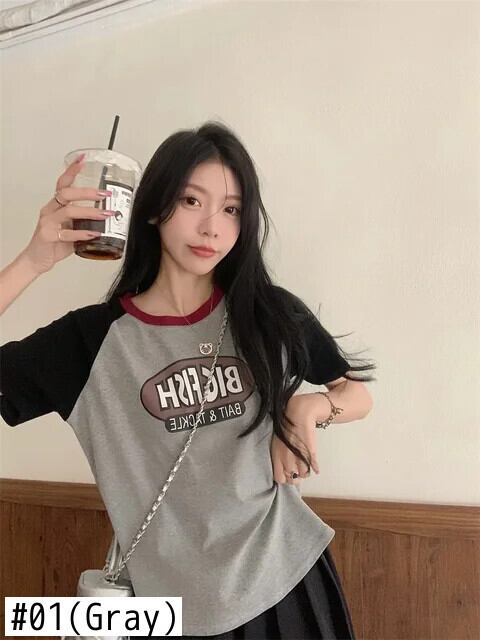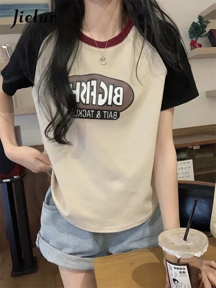 送料無料 Jielur 夏コントラストカラースリムレディース Tシャツルーズ Tシャツ女性アプリコットグレーホワイトシンプルトップ サマー 夏物 AE12188787811183979896