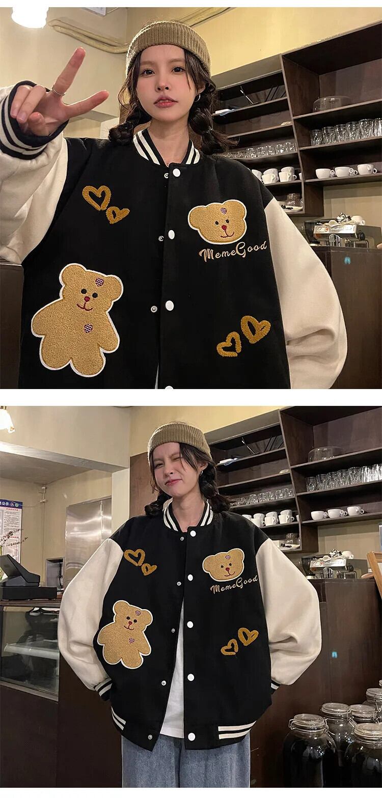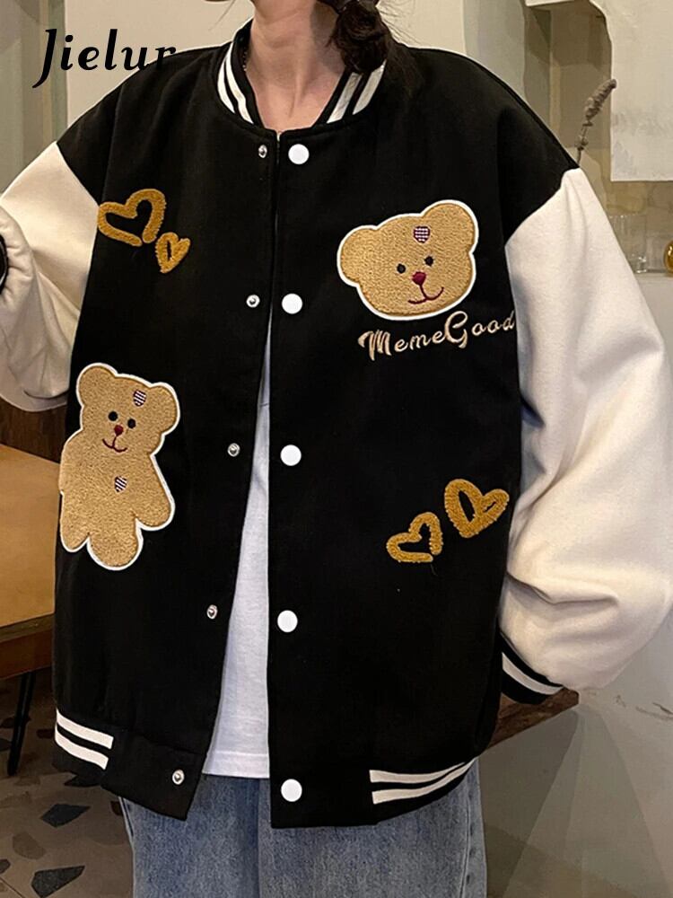 送料無料 Jielur 秋アメリカンストリートジャケット女性ルーズストリート Chicly ジャケットブラックアプリコットトップ女性 オータム 秋物 AE12188787837905921980