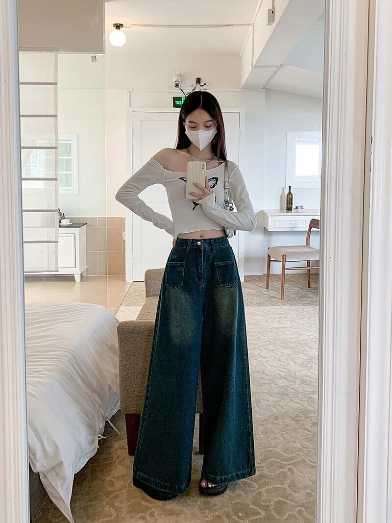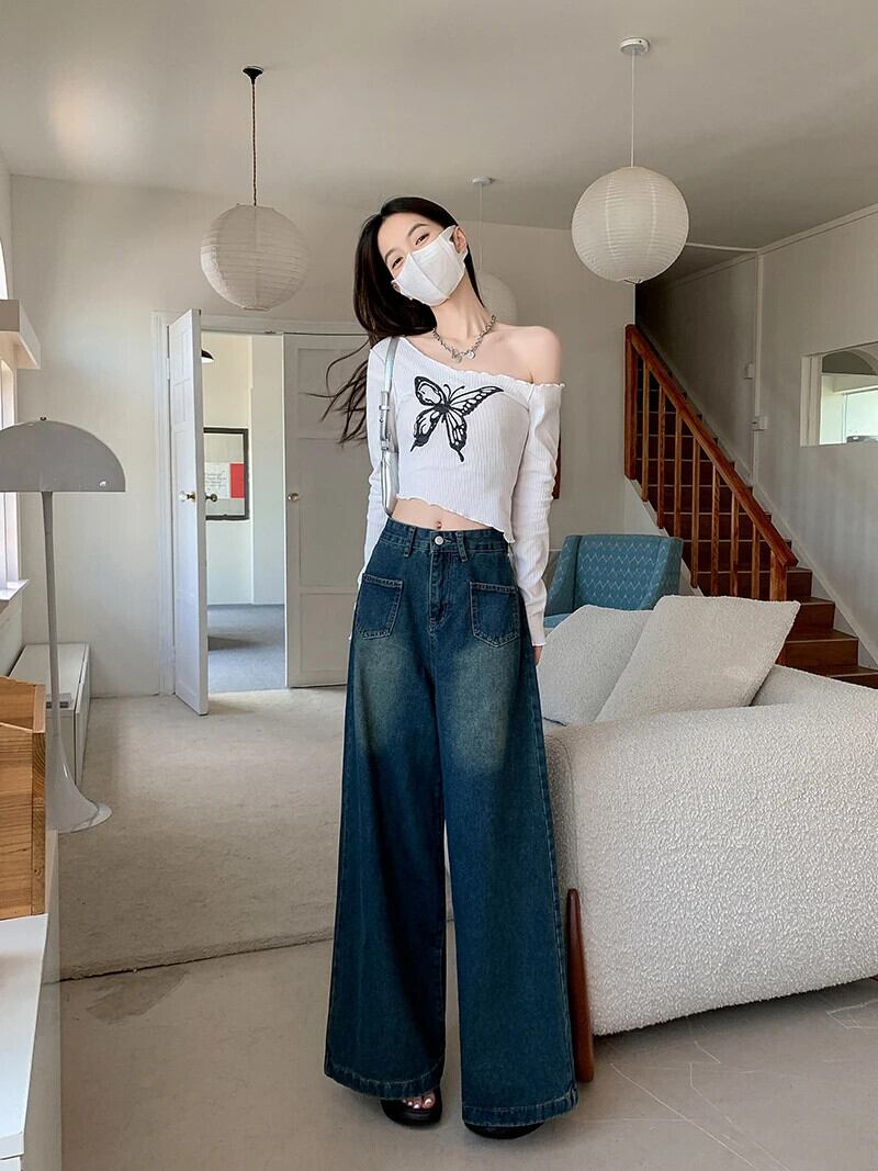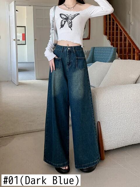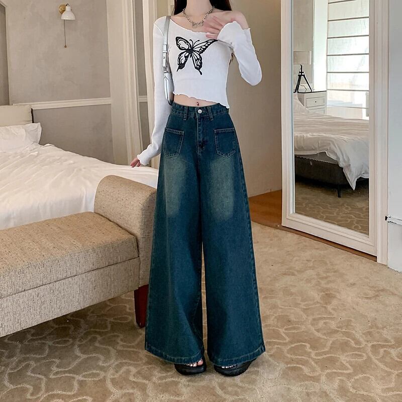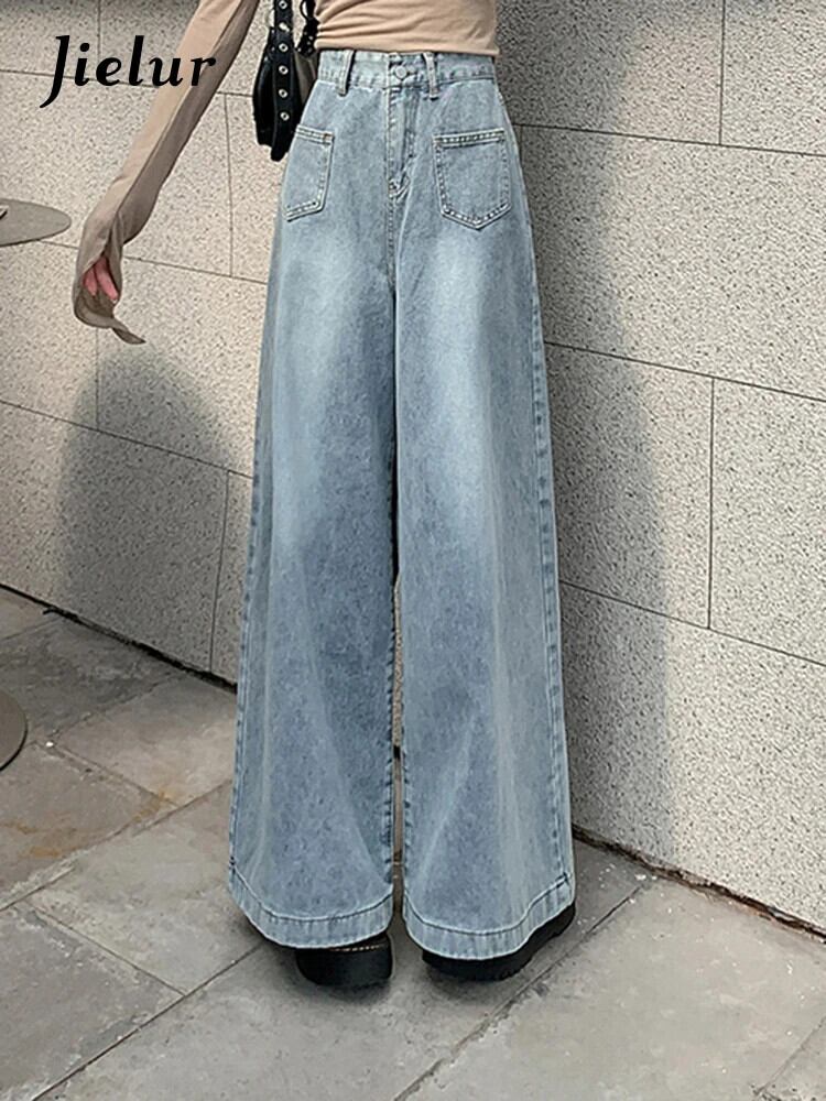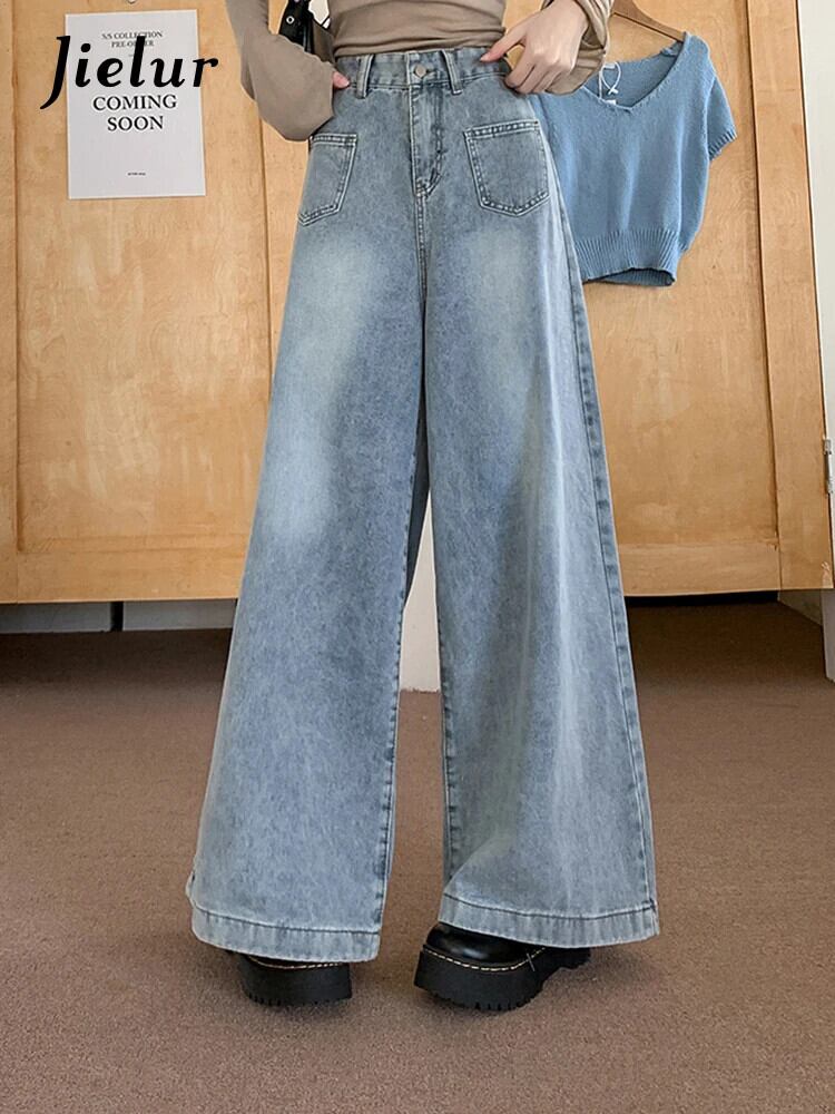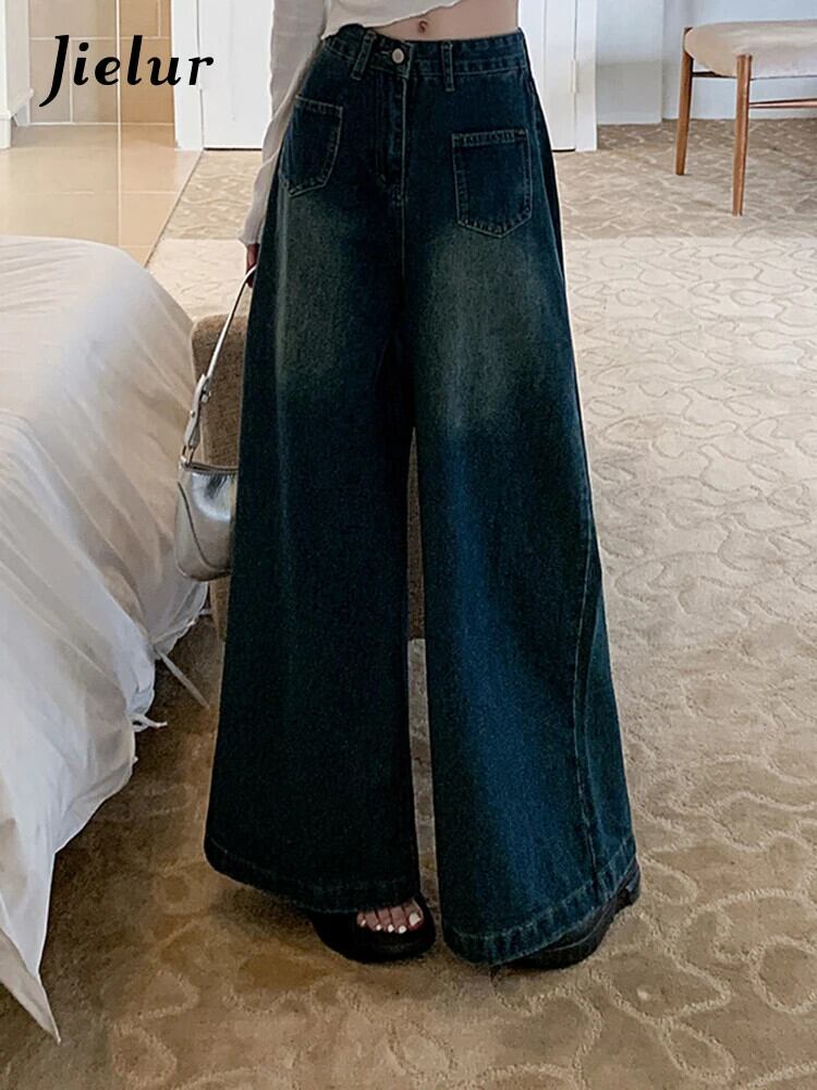 送料無料 Jielur ダークブルーヴィンテージルーズ女性ジーンズ秋ウエストスリム全身シックなポケット 2 色フレアジーンズ オータム 秋物 ビンテージ AE1218878787448229796