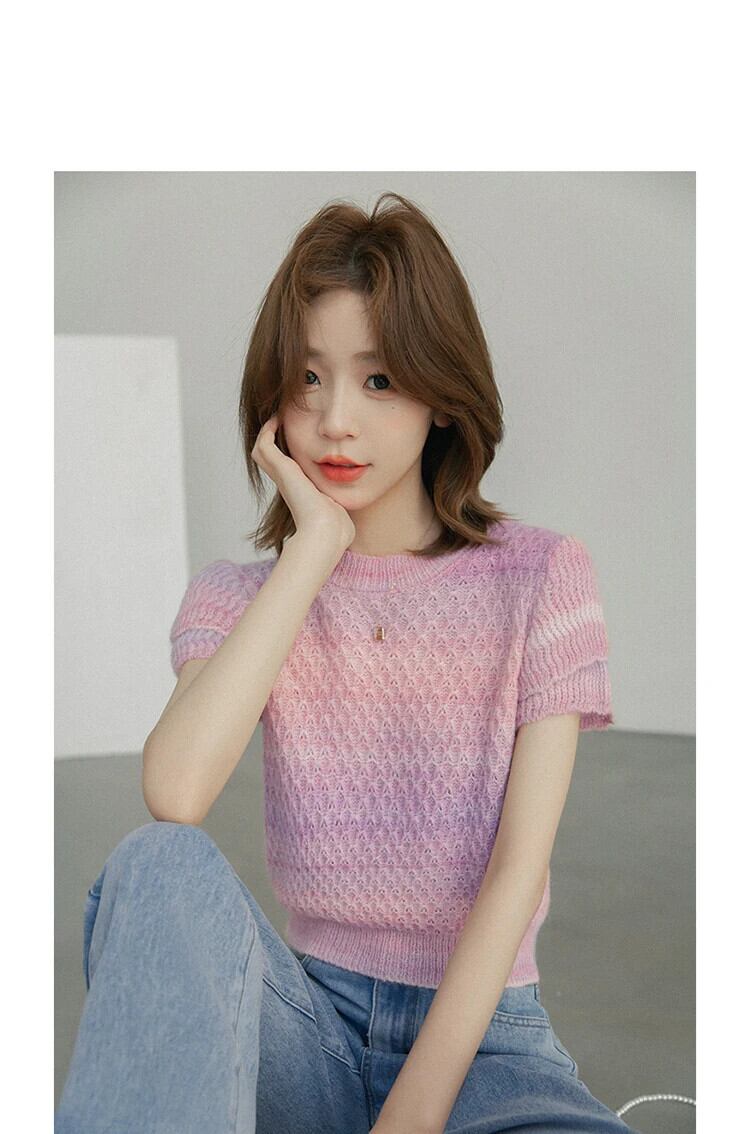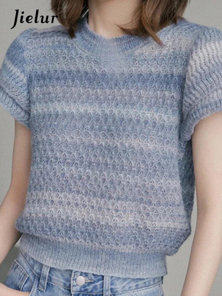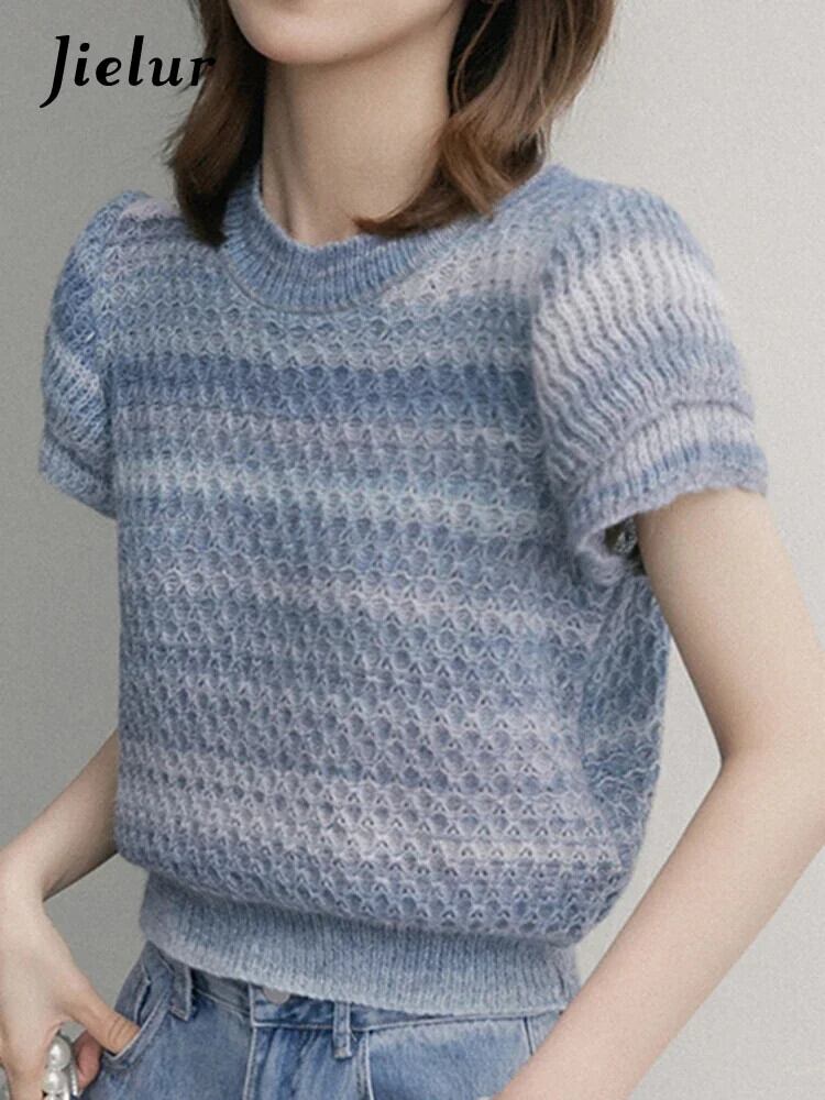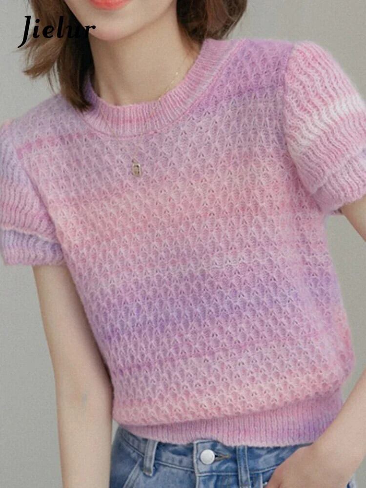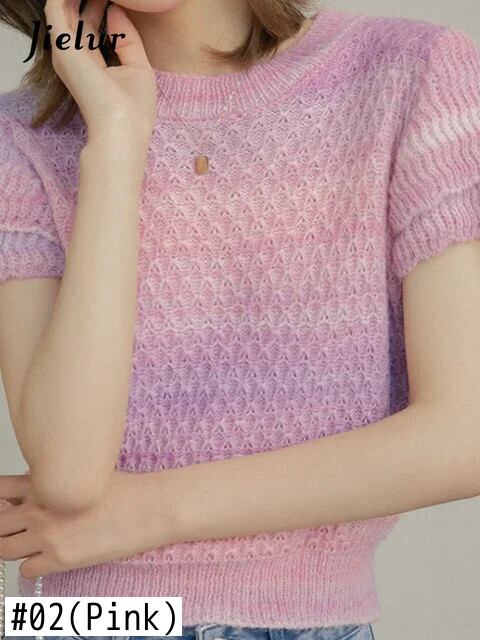 送料無料 Jielur 夏スリム中空アウトニット女性ブラウス甘いスペルカラーシンプルなトップ女性のベーシックプルオーバーブラウス 大人ガーリー スウィート キュート カジュアル サマー 夏物 AE12188787866494892035