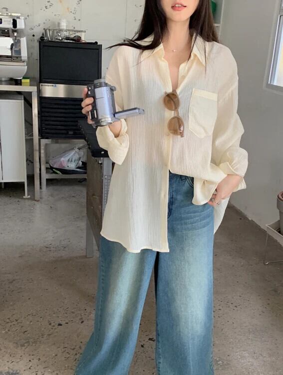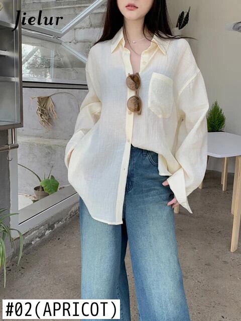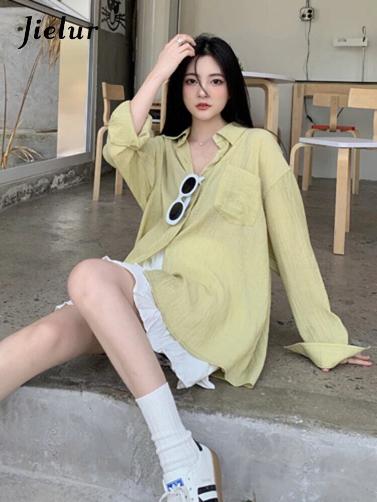 送料無料 Jielur レジャーグリーンシンプルなシャツ女性シックなボタンラペルトップス女性ルーズ長袖シャツ秋ブラウス ロング オータム 秋物 AE12188787893766113407