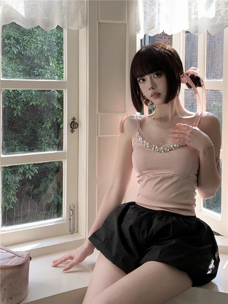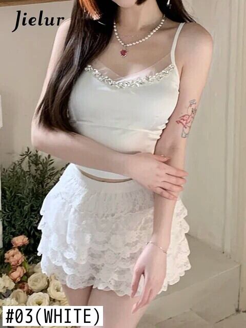送料無料 Jielur 夏フレンチセクシーな女性のキャミソールルーズキャミソール女性ピンク黒白シンプルなベーシックノースリーブトップ ホワイト ブラック サマー 夏物 AE12188787859091436629