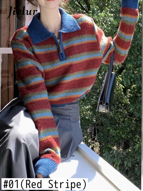 送料無料 Jielur 秋ヴィンテージアメリカ女性のプルオーバールーズニットプルオーバー女性レッドストリートプルオーバー オータム 秋物 ビンテージ AE1218878782164973260