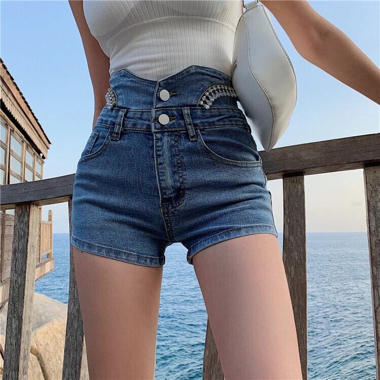 送料無料 Jielur 夏スリムデニムショートパンツ女性ウエストストリート女性のショートパンツシンプルなベーシック Chicly ショーツ サマー 夏物 ブルマー AE12188787882234939152