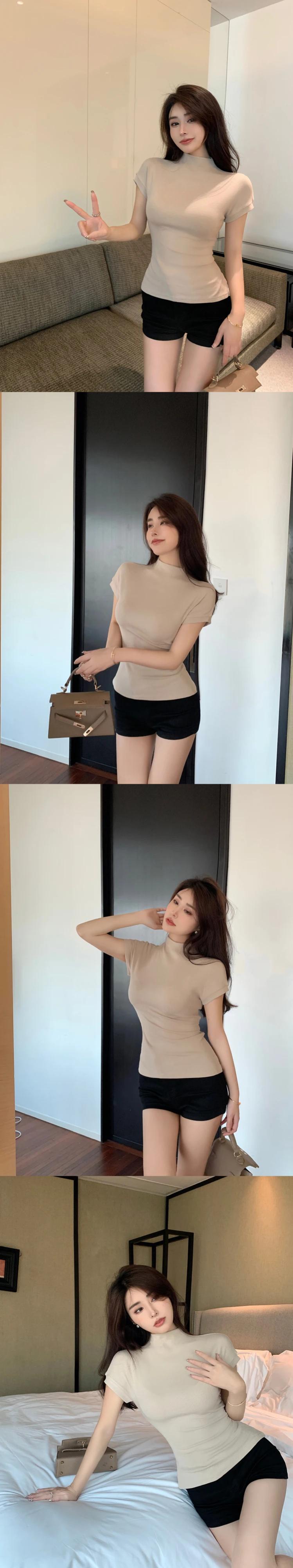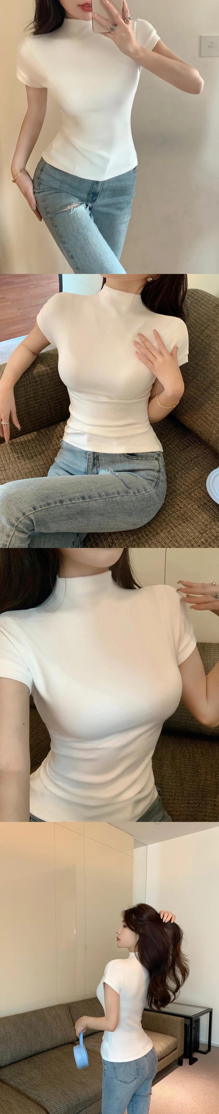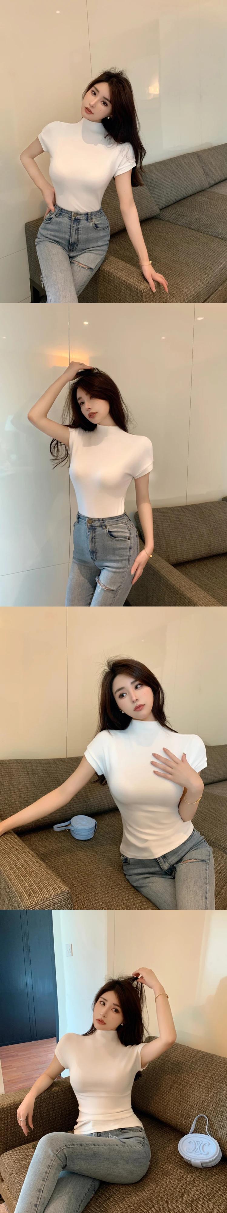 送料無料 Jielur 夏無地スリム女性の Tシャツシンプルなベーシック Tシャツ女性白黒アプリコットミルクコーヒーストリートトップ ホワイト ブラック サマー 夏物 ソリッドカラー AE12188787887679332032