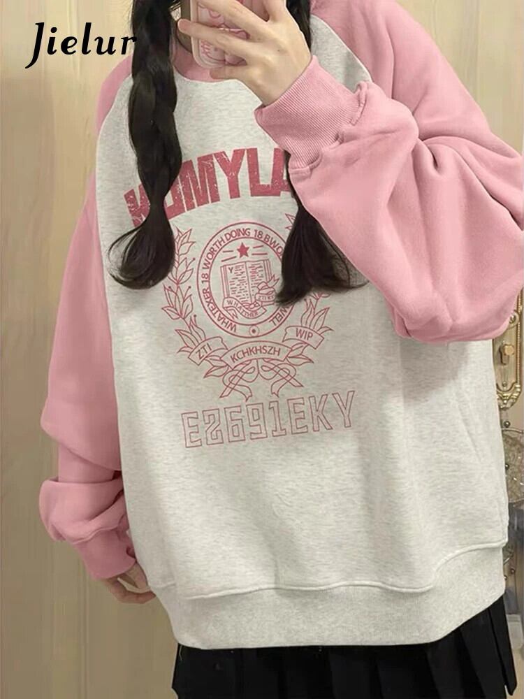 送料無料 Jielur 秋アメリカンストリート女性パーカールーズパーカーベーシック甘いチクリーニットスウェット女性 シャツ 大人ガーリー スウィート キュート カジュアル オータム 秋物 AE12188787813061901006