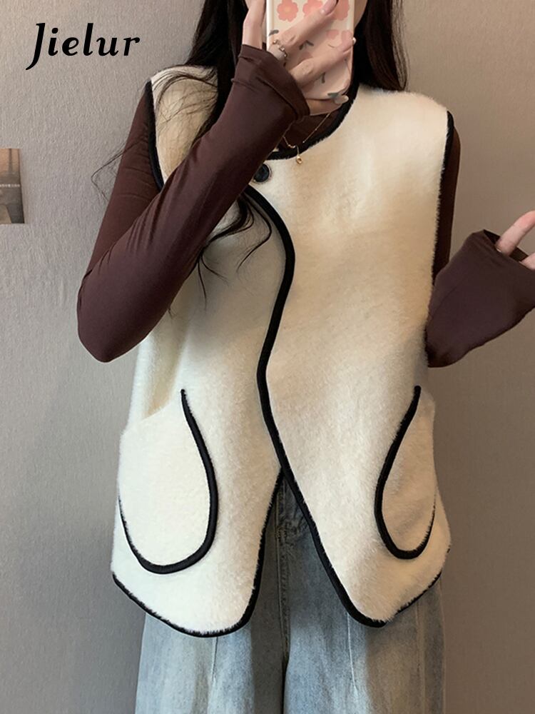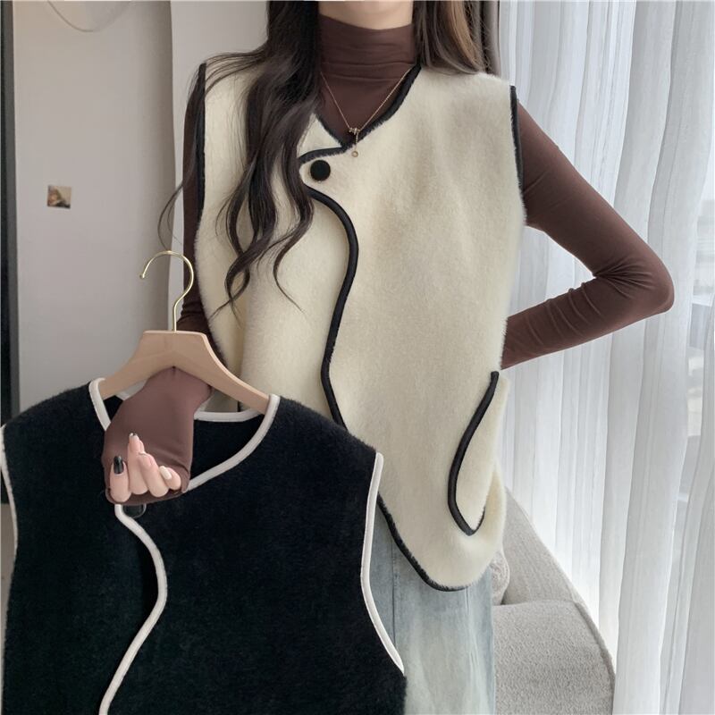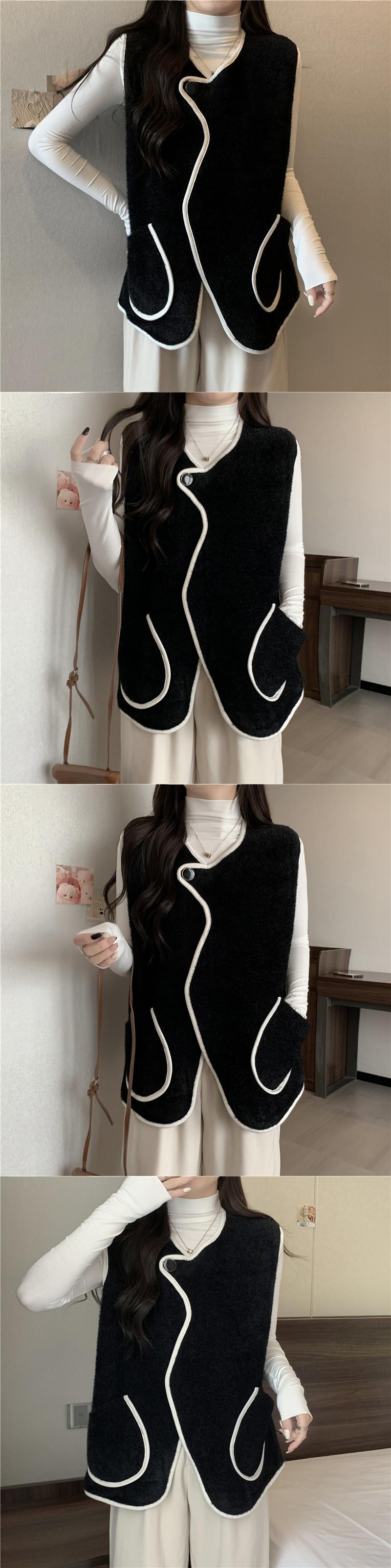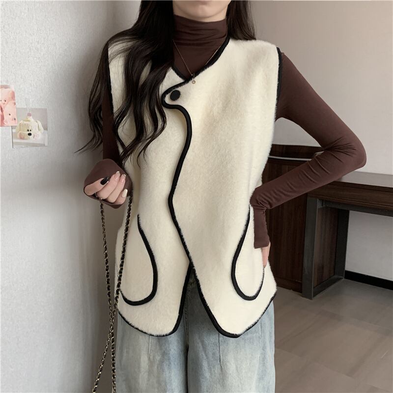 送料無料 Jielur 秋のコントラストカラースリムベスト女性ルーズニットベストアプリコット黒シックなストリートトップ女性 ブラック オータム 秋物 AE12188787875239131670