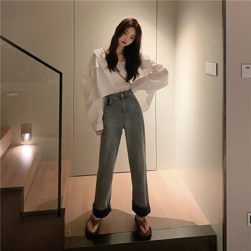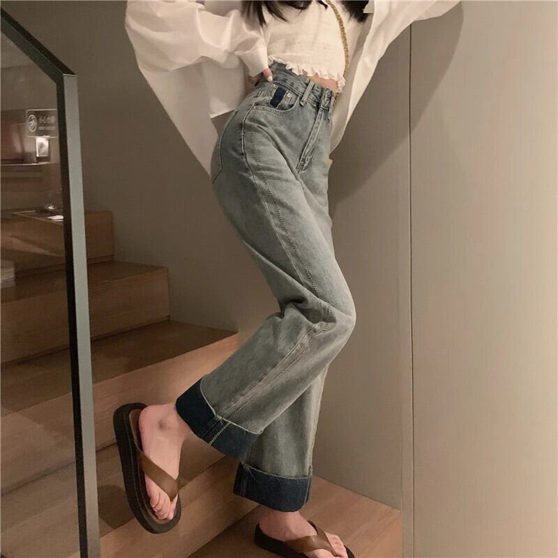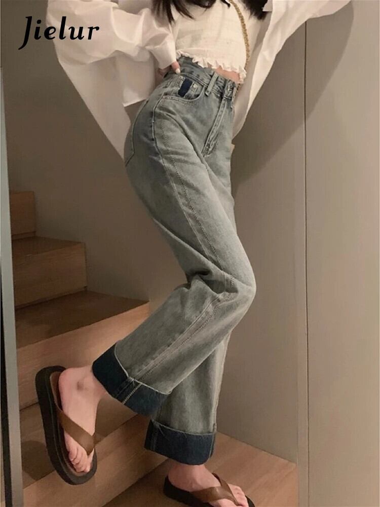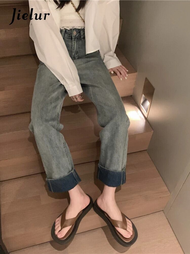 送料無料 Jielur 夏ウエストレトロ緩い女性のジーンズシンプルなジーンズ女性ブルーベーシックストリート Chicly パンツ サマー 夏物 AE12188787874439247677