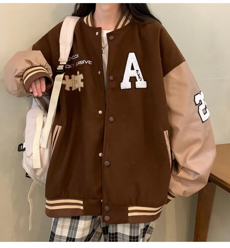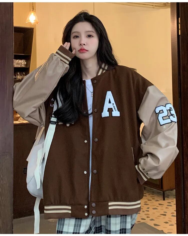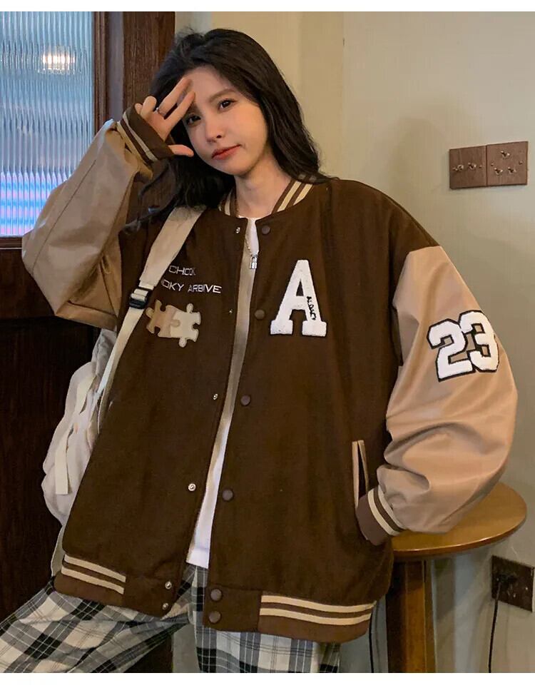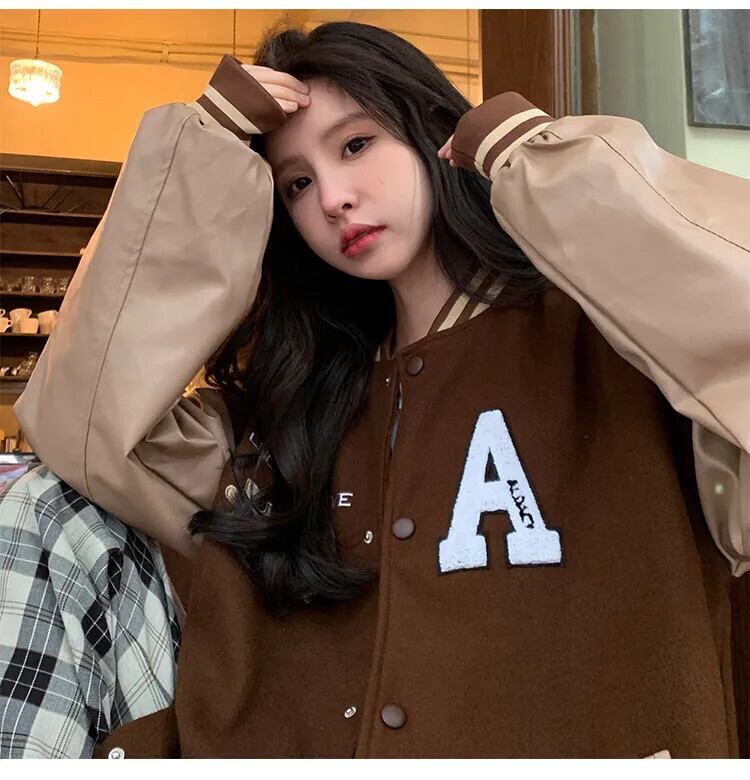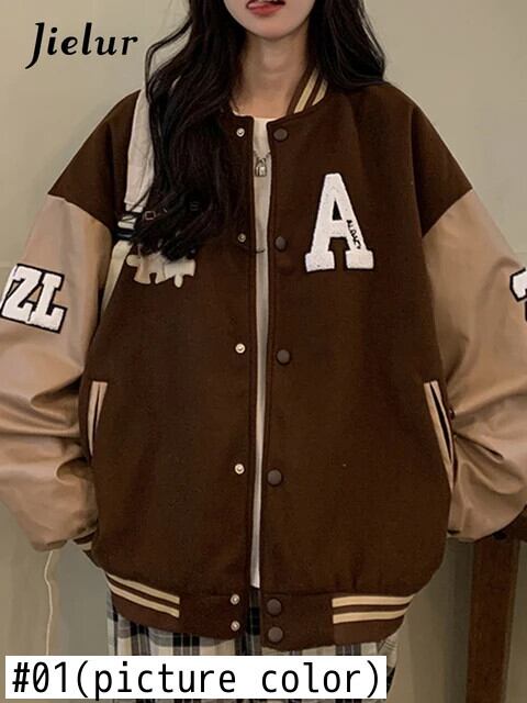 送料無料 Jielur 秋アメリカンヴィンテージストリートジャケット女性ルーズストリートジャケットイン基本刺繍トップ女性 オータム 秋物 ビンテージ AE12188787848521736536