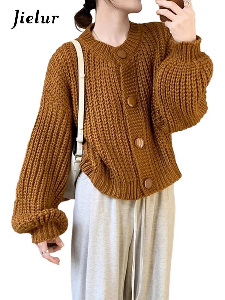 送料無料 Jielur ヴィンテージソリッドカラーの女性カーディガンスウィートシックカーディガン女性シンプルベーシックニットセーター 大人ガーリー キュート カジュアル ビンテージ AE12188787840468268026
