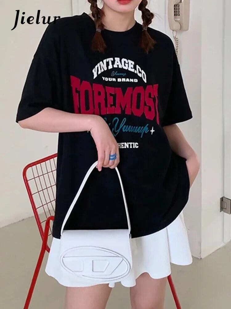 送料無料 Jielur 夏ルーズスリム女性の Tシャツ甘い Tシャツ女性黒アプリコットグリーンシンプルベーシックシックなトップ ブラック 大人ガーリー スウィート キュート カジュアル サマー 夏物 AE12188787846722311950