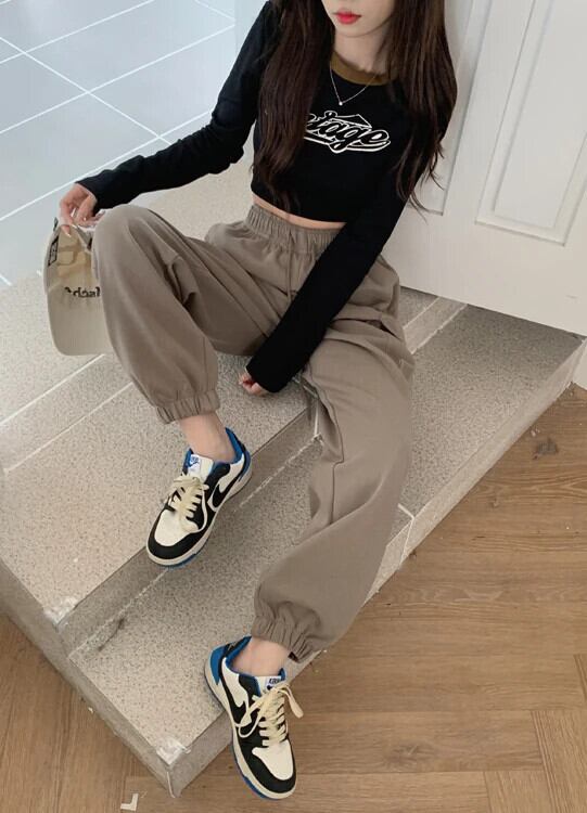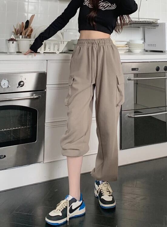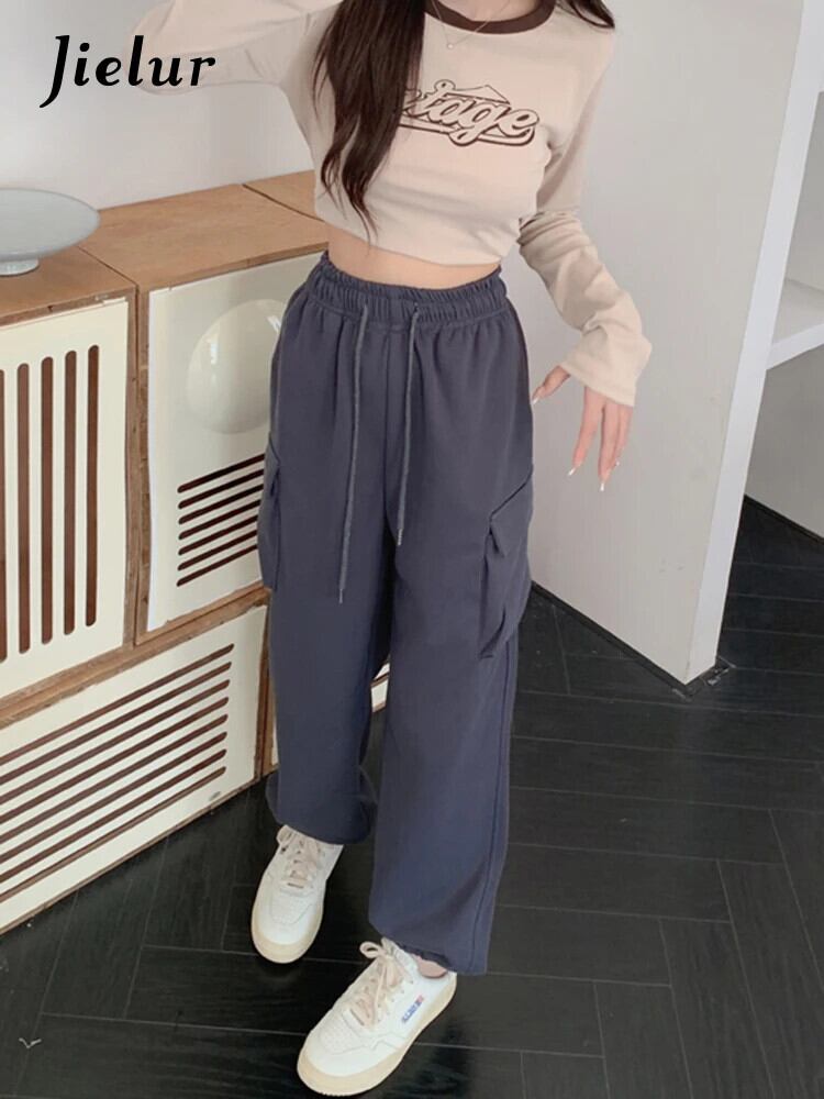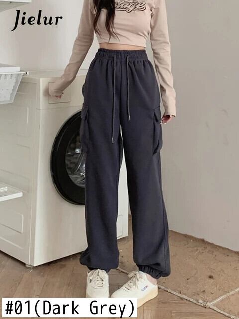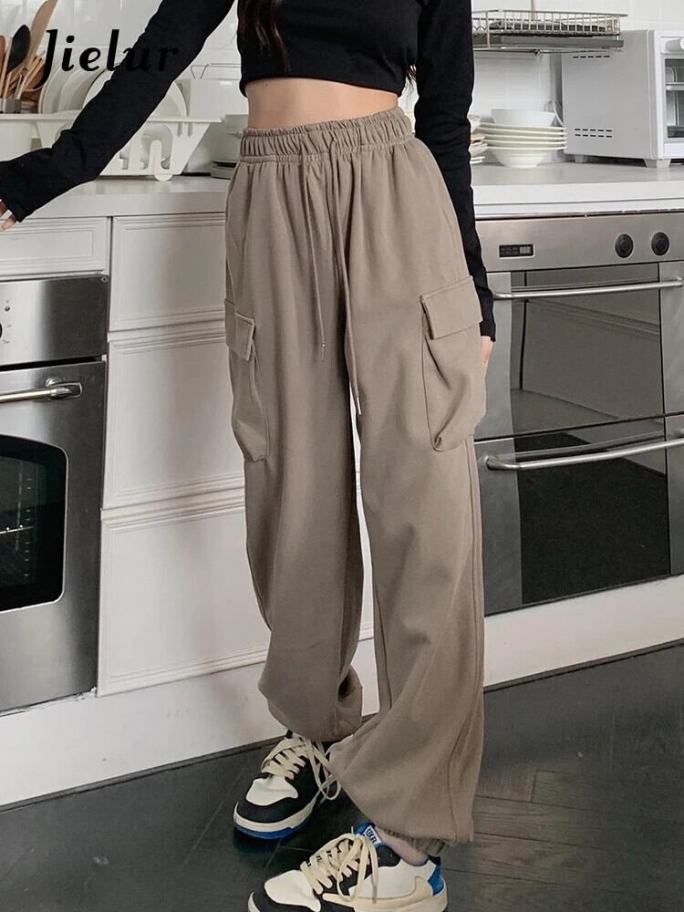 送料無料 Jielur ビッグポケットカーゴパンツ女性 Y2k 弾性ウエスト巾着だぶだぶのズボンヴィンテージルーズストレートパンツ エラスティック 伸縮 ビンテージ AE12188787834874054225