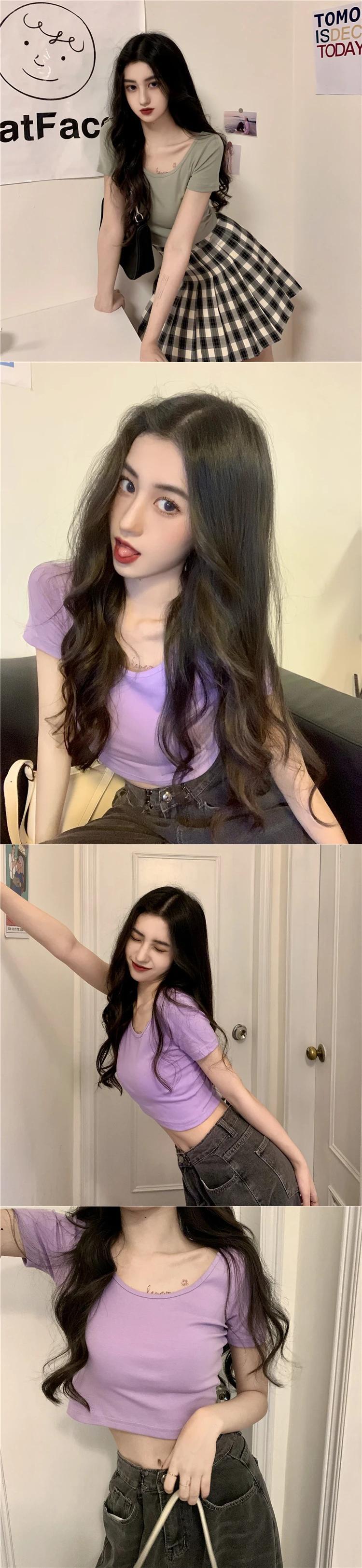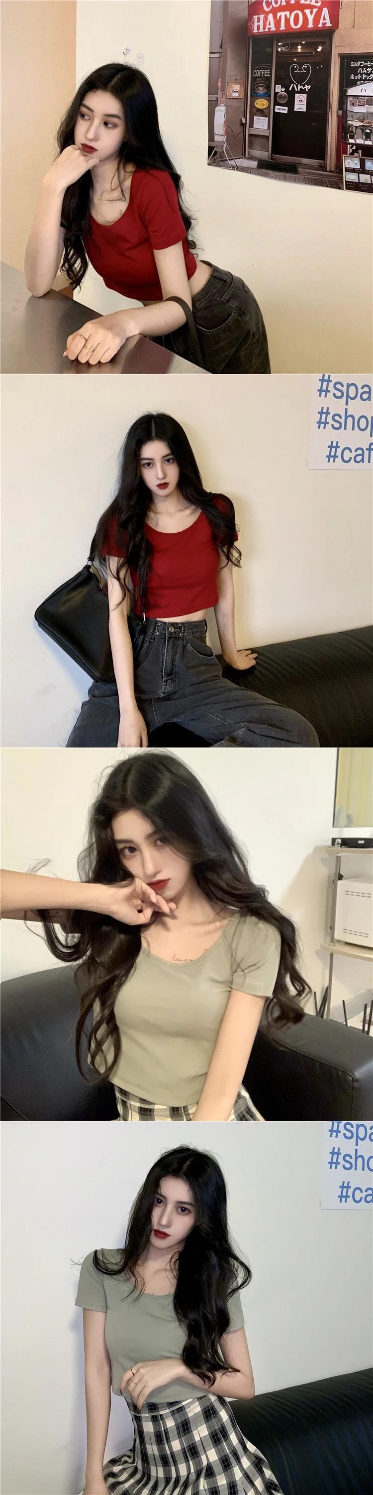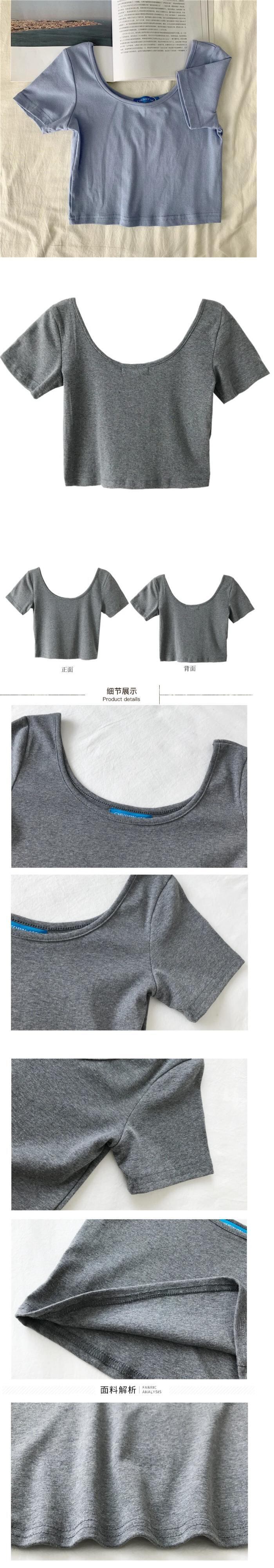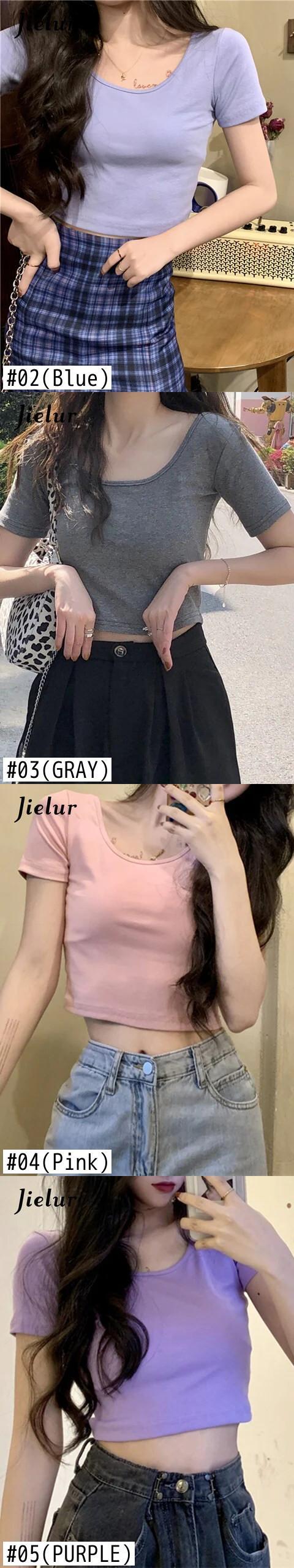 送料無料 Jielur U ネック 9 色半袖女性の Tシャツスリムショートクロップトップベーシックボトリングシャツセクシーな女の子 Tシャツブラック AE12188787870107952782
