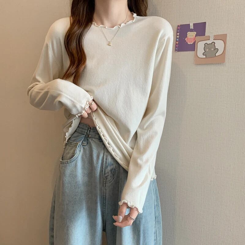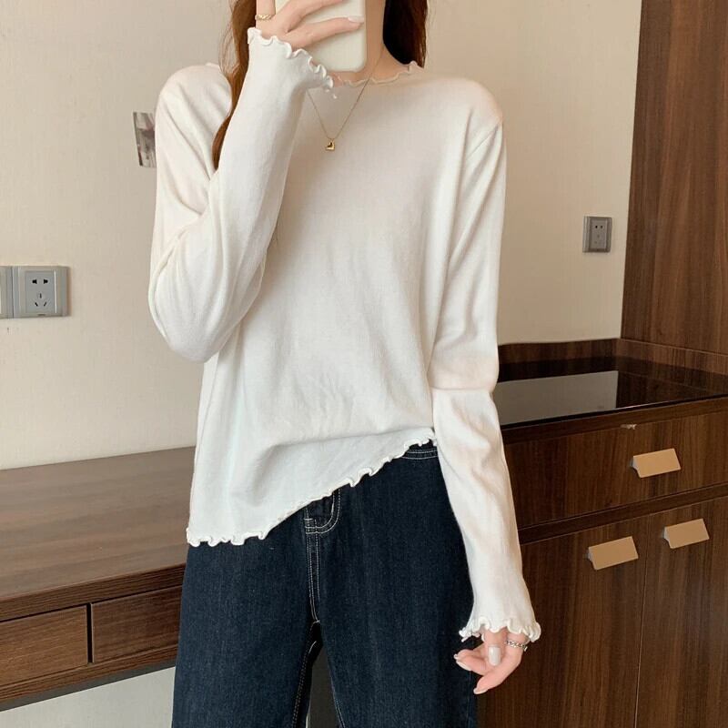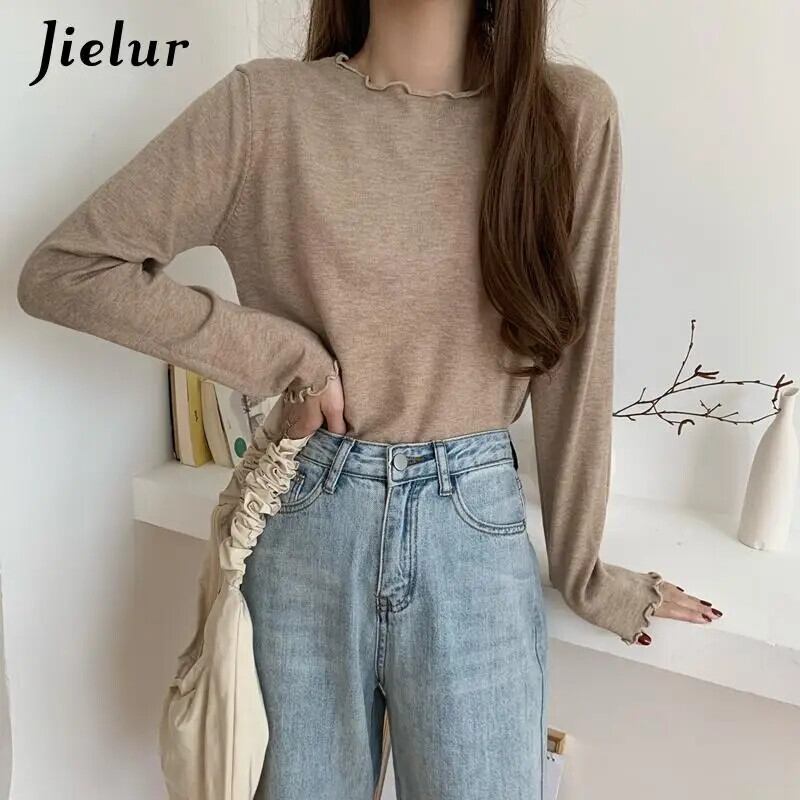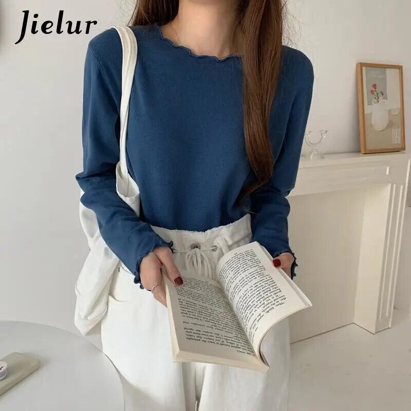 送料無料 Jielur 秋ニットセーターレディースセーター冬白黒ニット女性プルオーバーフリルジャンパープル ホワイト ブラック ラッフル オータム 秋物 ウィンター 冬物 AE12188787810237490150