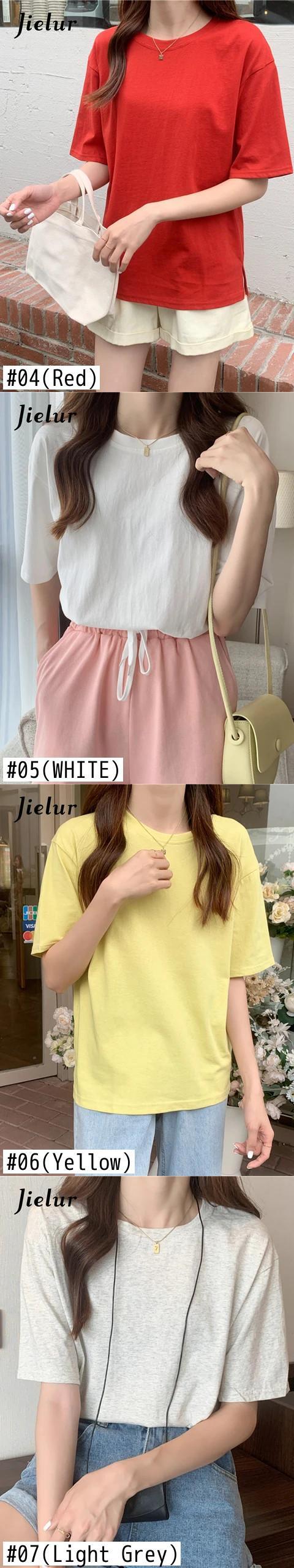 送料無料 Jielur 無地イエロー Tシャツ夏ルーズ Tシャツ半袖コットントップ因果基本女性 Tシャツ M-XL ショート ハーフスリーブ サマー 夏物 ソリッドカラー AE12188787869574239274
