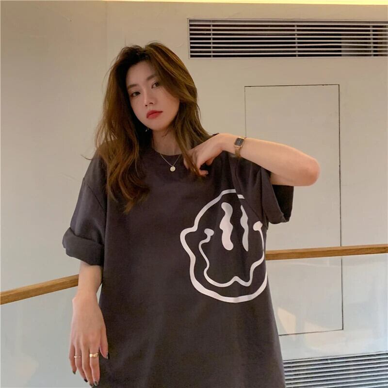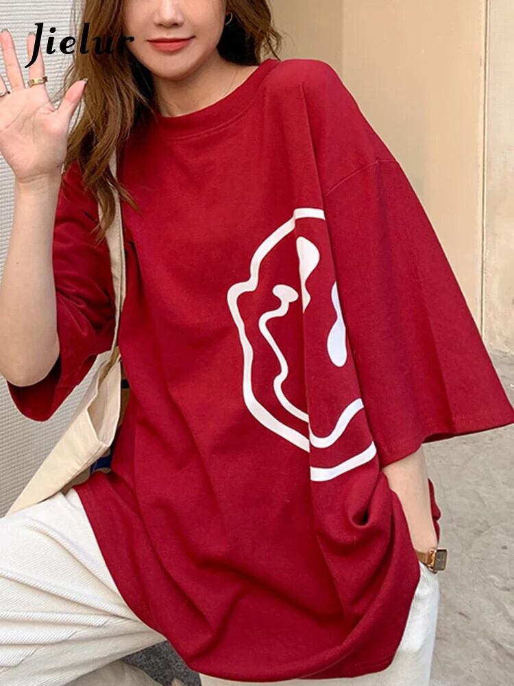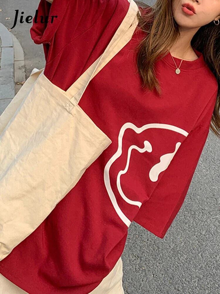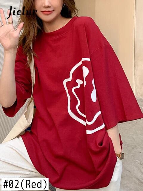 送料無料 Jielur 漫画プリント Tシャツ夏ルーズ Tシャツ半袖ヤング BF 原宿トップ女性ダークグレー赤 ショート ハーフスリーブ かわいい サマー 夏物 AE12188787853753346756
