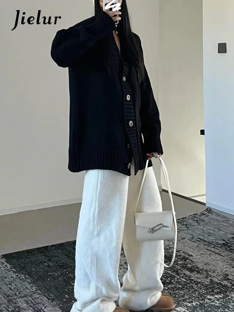送料無料 Jielur 秋無地スリム女性カーディガンルーズカーディガン女性シンプルなベーシックストリートニットセーター オータム 秋物 ソリッドカラー AE12188787854592703091