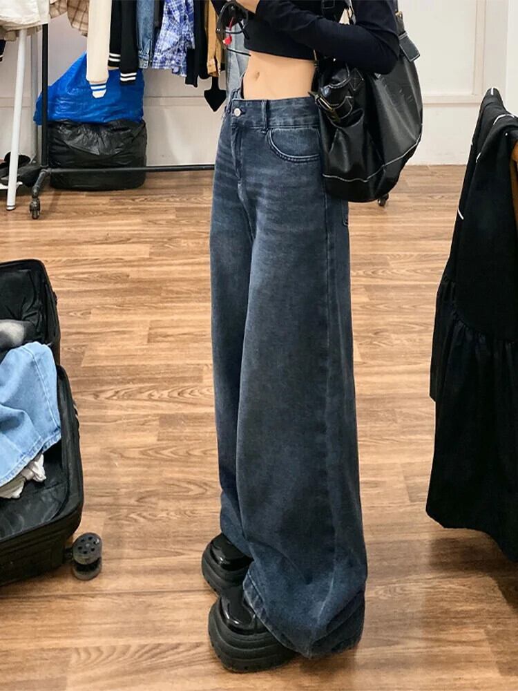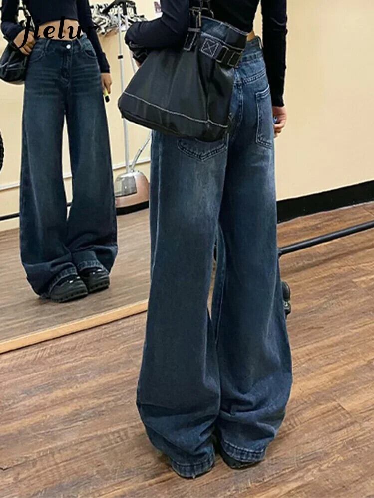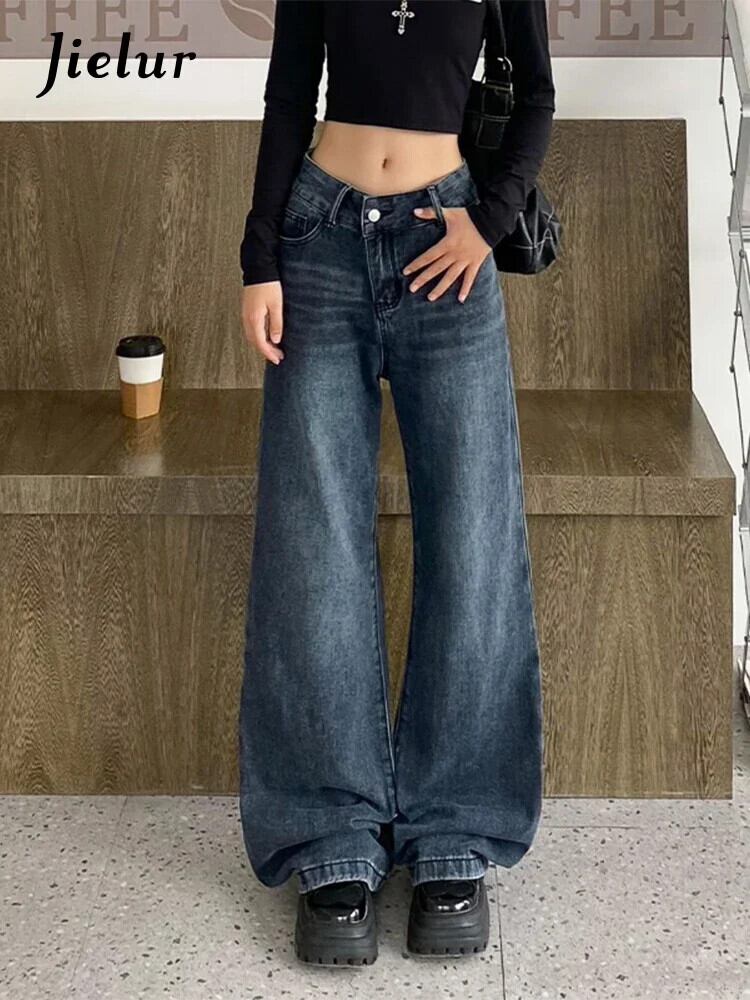 送料無料 Jielur 春レトロウエストストレート女性のジーンズシックなスリムベーシックジーンズ女性ブルーシンプルなパンツ スプリング 春物 AE12188787818483257528