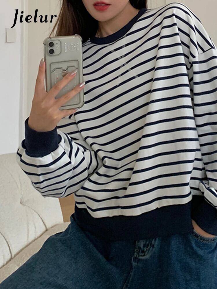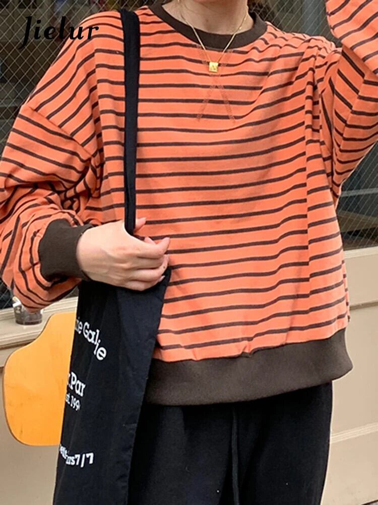 送料無料 Jielur 秋スリムストライプパーカー女性ルーズストリートシックパーカーベーシックシンプルな白紫トップ女性 ホワイト オータム 秋物 パープル AE12188787862905425702