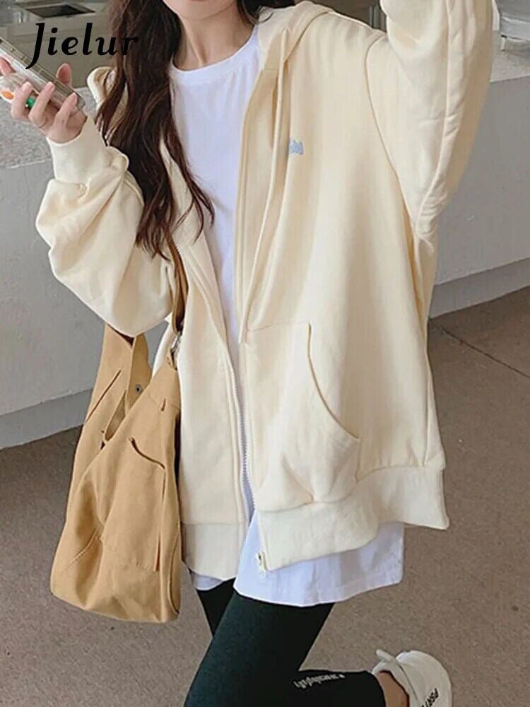 送料無料 Jielur 秋無地アメリカンジャケット女性ヴィンテージストリートルーズジャケットアプリコットピンクシックなトップ女性 オータム 秋物 ソリッドカラー ビンテージ AE12188787895776256375