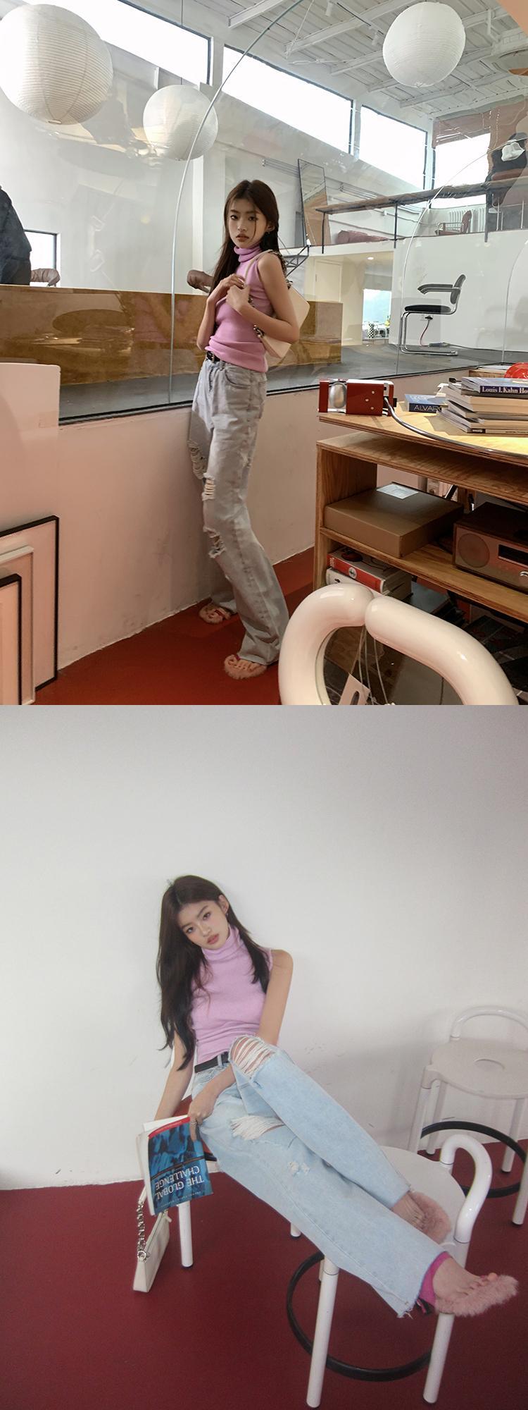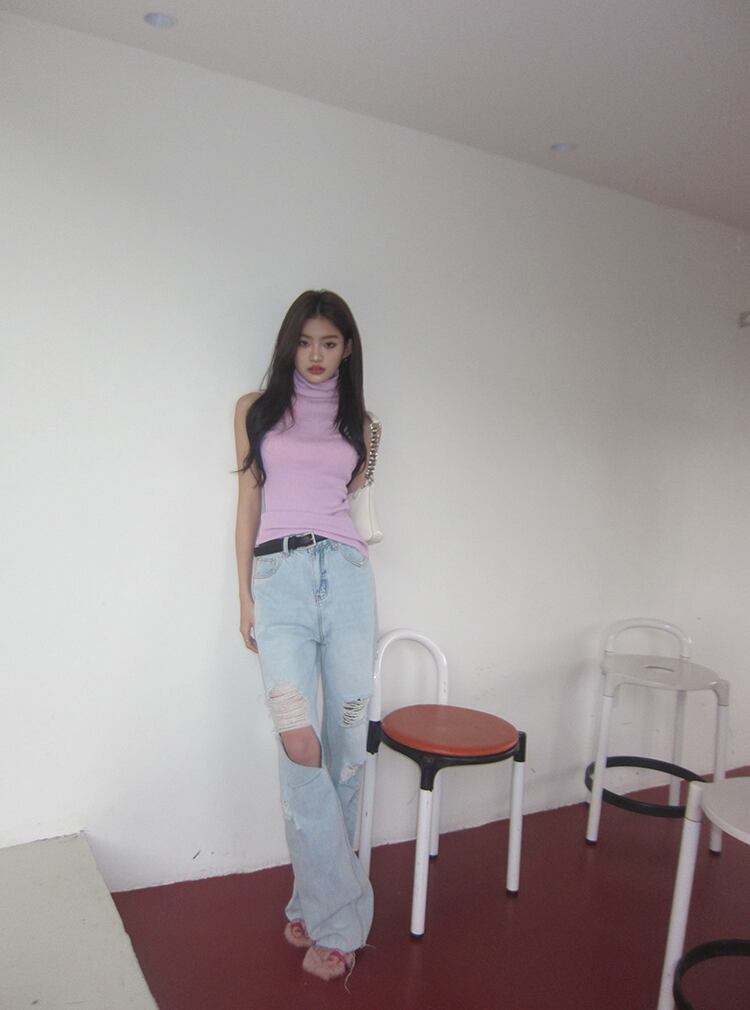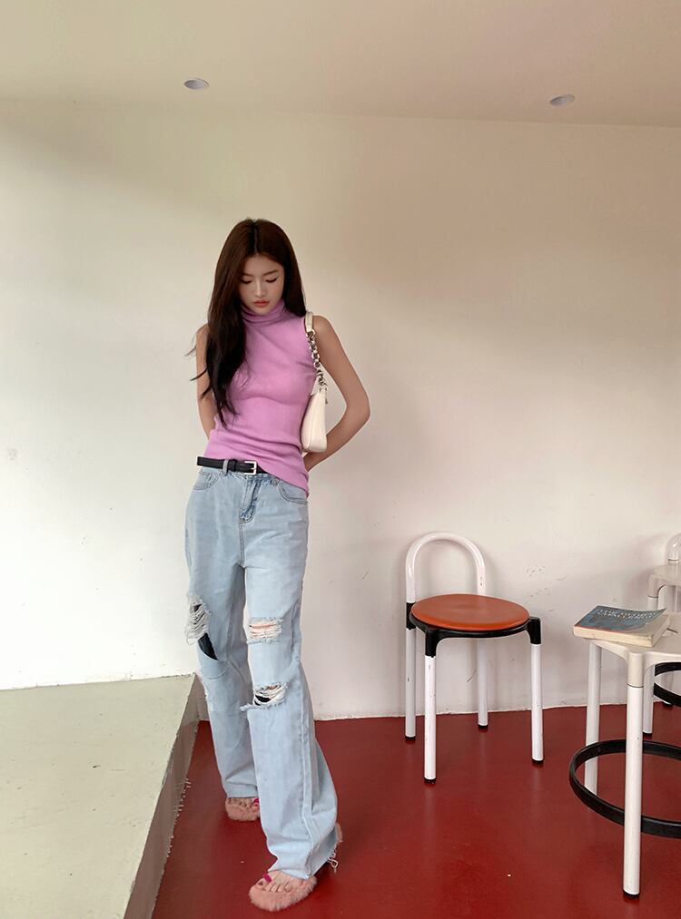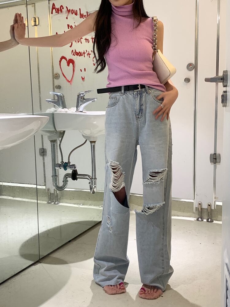 送料無料 Jielur 夏ディストレストウエスト女性のジーンズ無地シンプルな穴ジーンズ女性ブルーライトパンツ Femlae サマー 夏物 ソリッドカラー AE12188787827245561923
