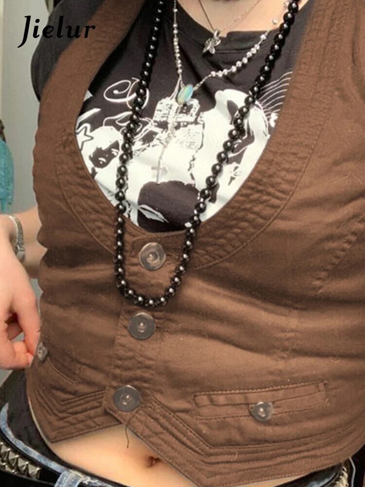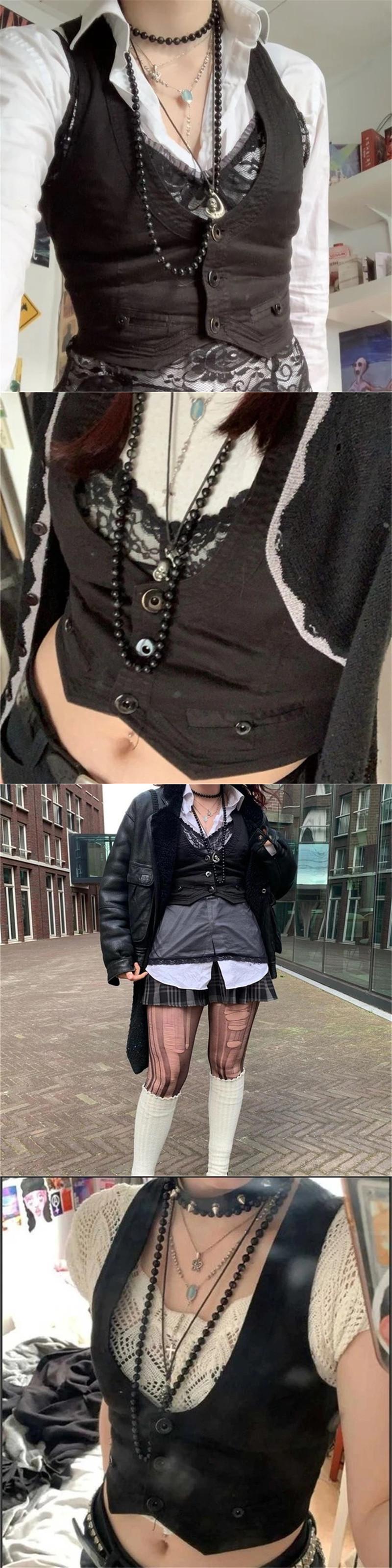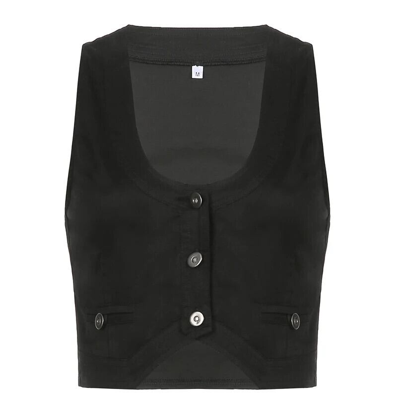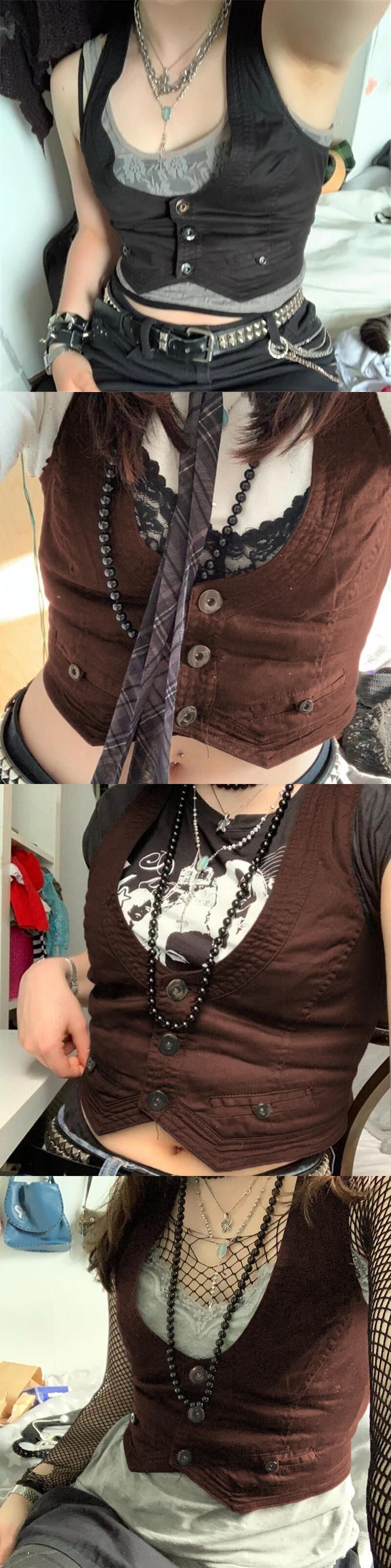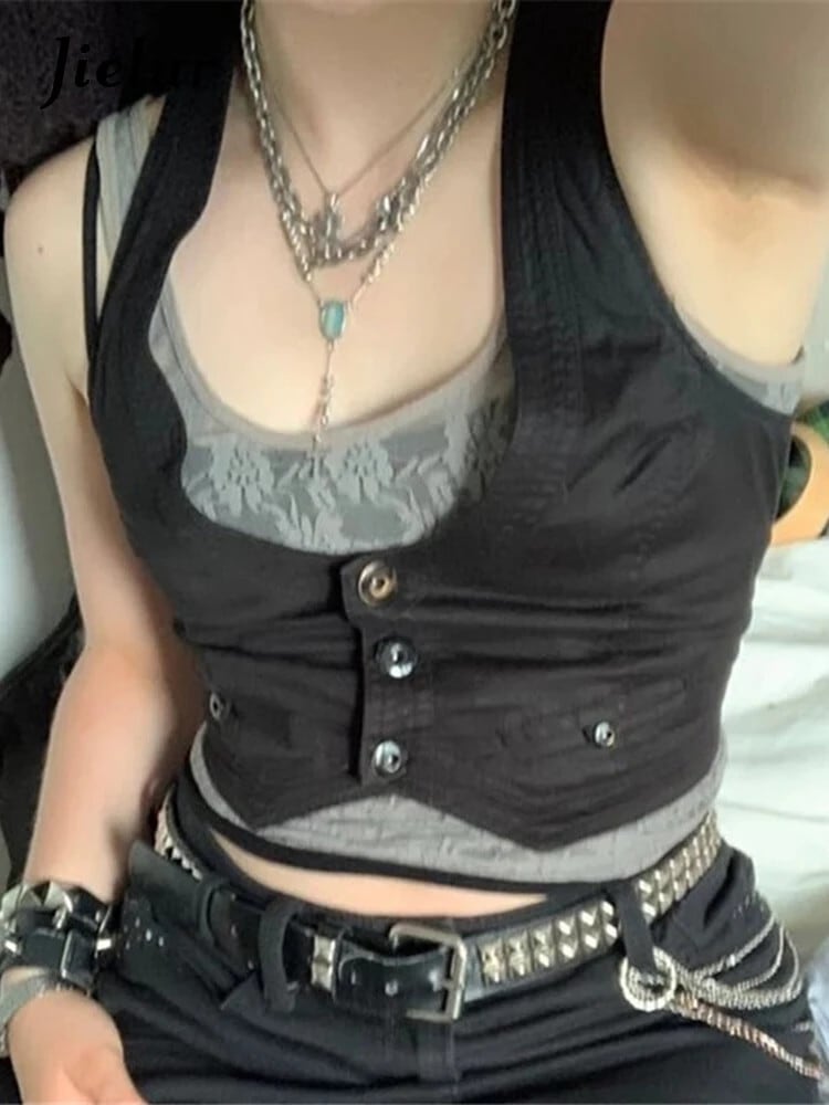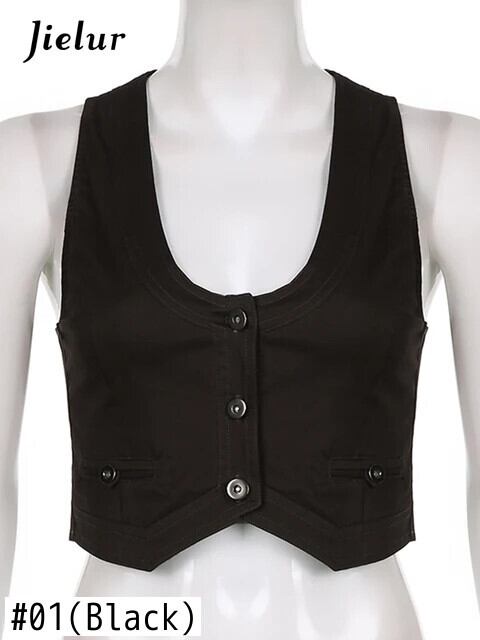 送料無料 Jielur Y2K ボタンコルセットトップ黒ノースリーブタンクトップスキニー V ネック美的パンククロップトップグランジフェアリーコア女性ベスト ブラック Vネック AE1218878787789178912