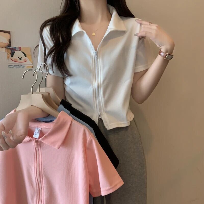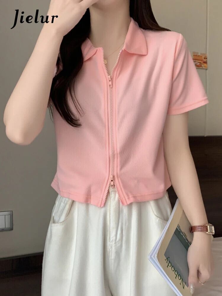 送料無料 Jielur 無地ポロ襟半袖ピンク Tシャツ女性の Tシャツ服夏のストリートトップス Tシャツ Y2K ショート ハーフスリーブ サマー 夏物 ソリッドカラー AE12188787830387770578
