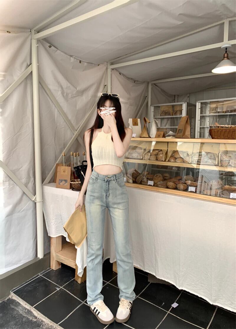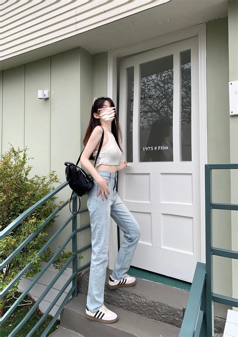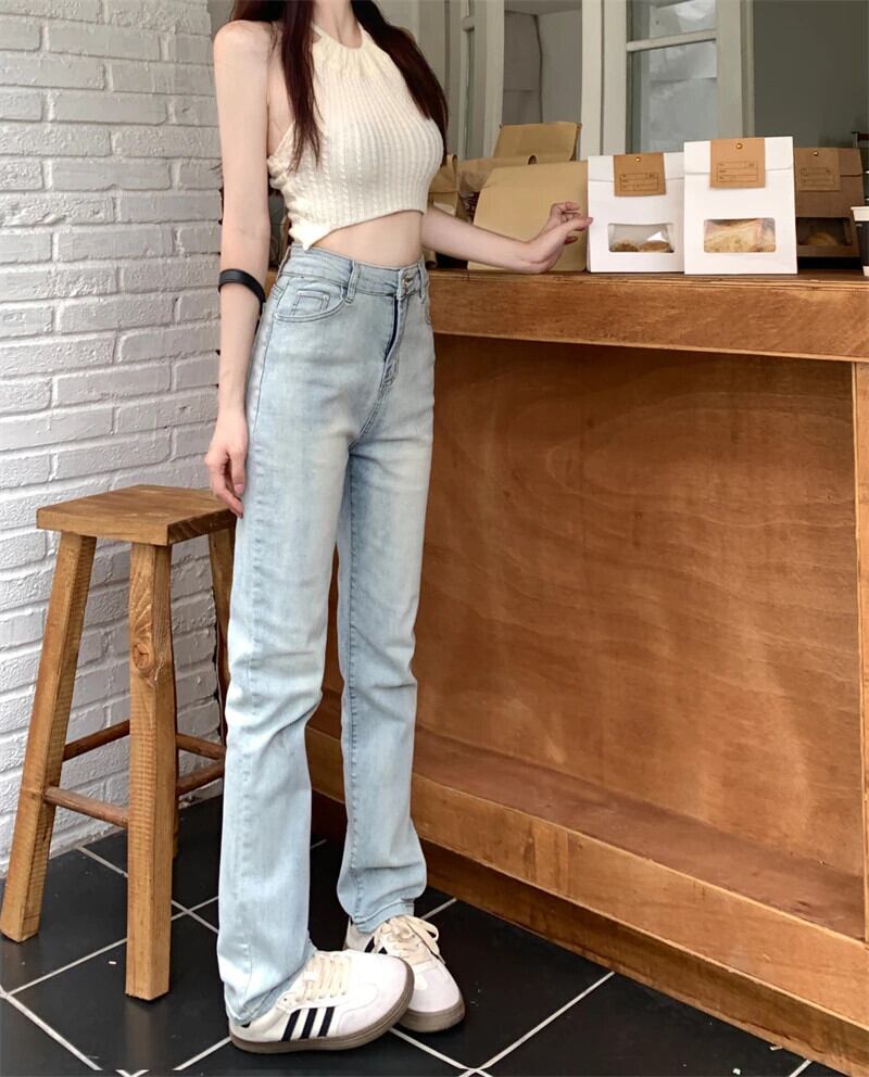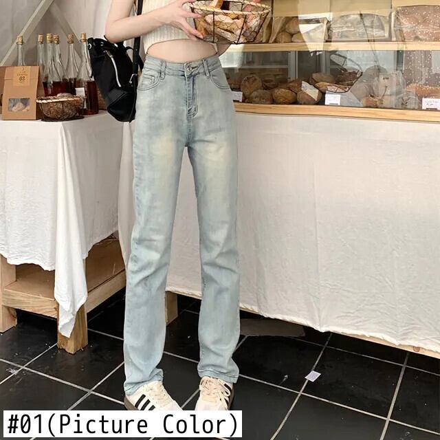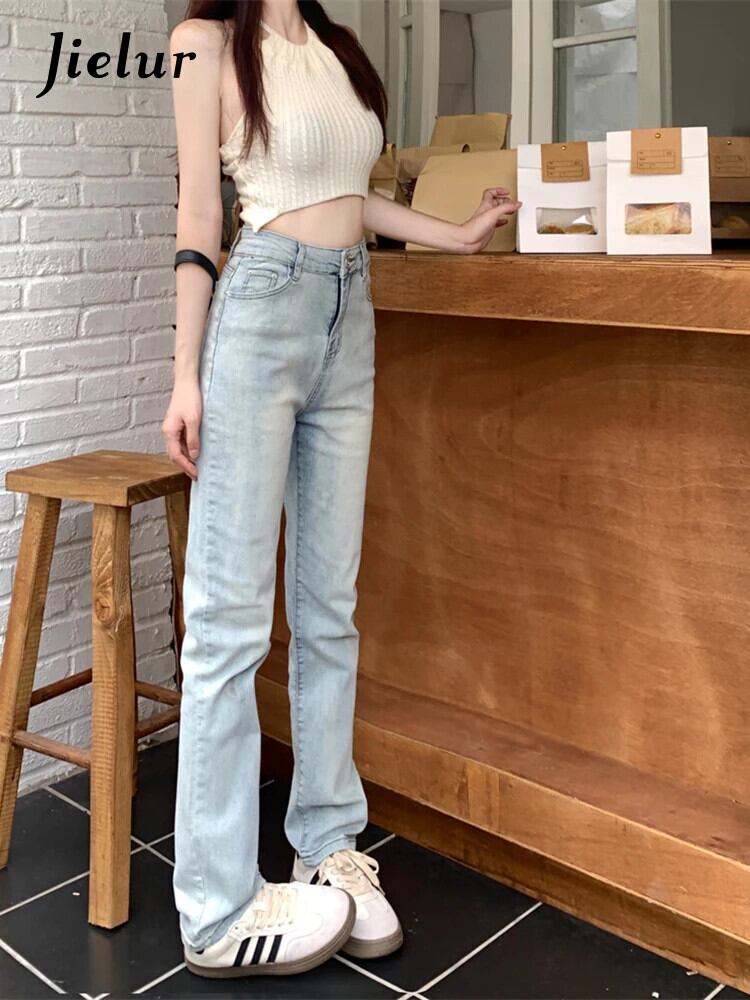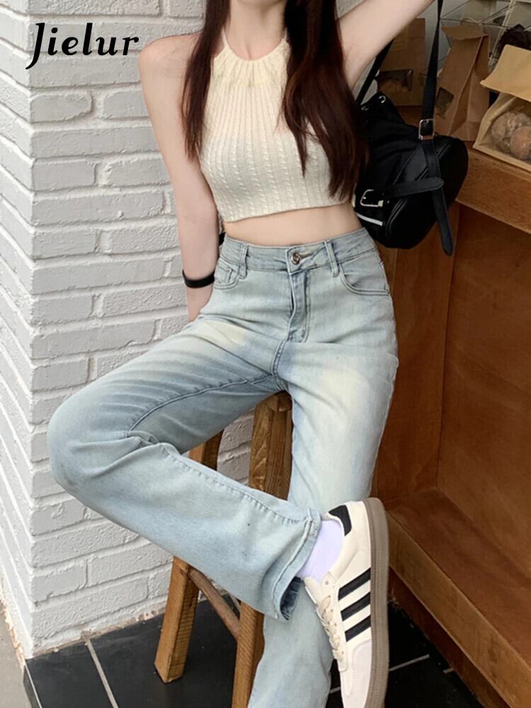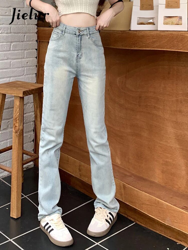 送料無料 Jielur スリムストレート女性のジーンズライトベーシックシンプルな若いジーンズ女性のウエストシックなデニムパンツ AE12188787828730973580