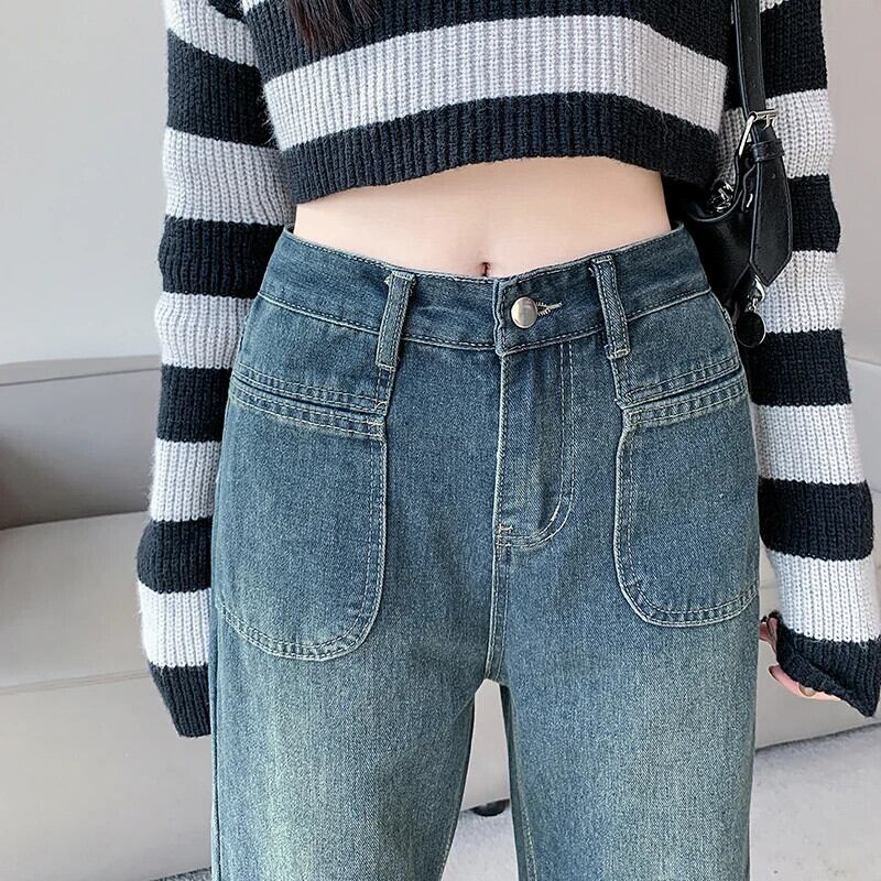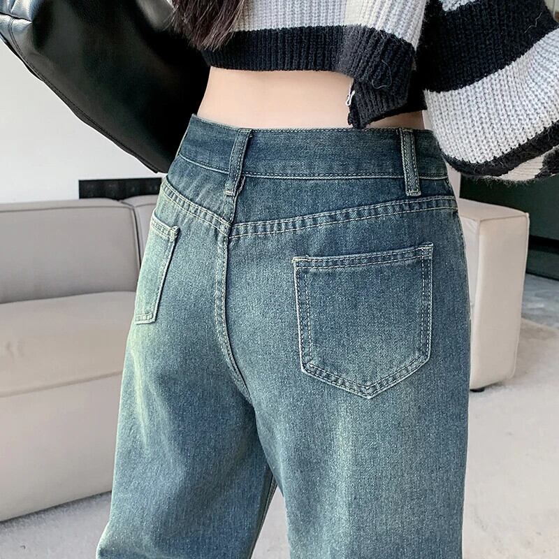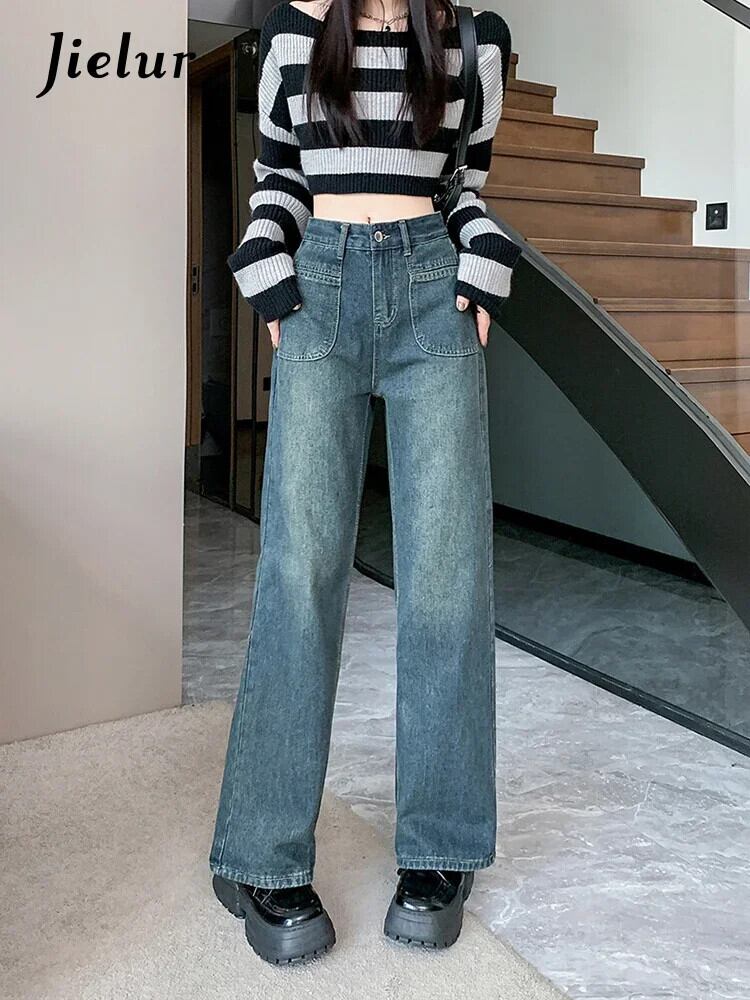 送料無料 Jielur 秋ヴィンテージウエスト女性ジーンズシンプルなベーシックストリートシックな女性のジーンズスリムストレートレッグパンツ オータム 秋物 ビンテージ AE12188787845066688371