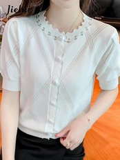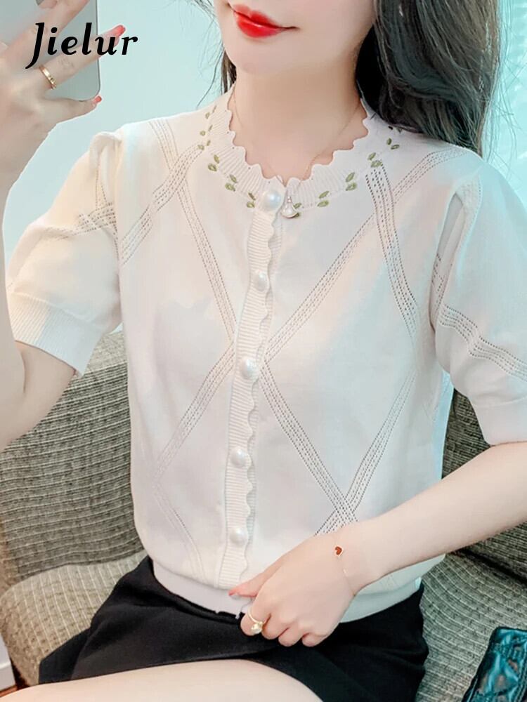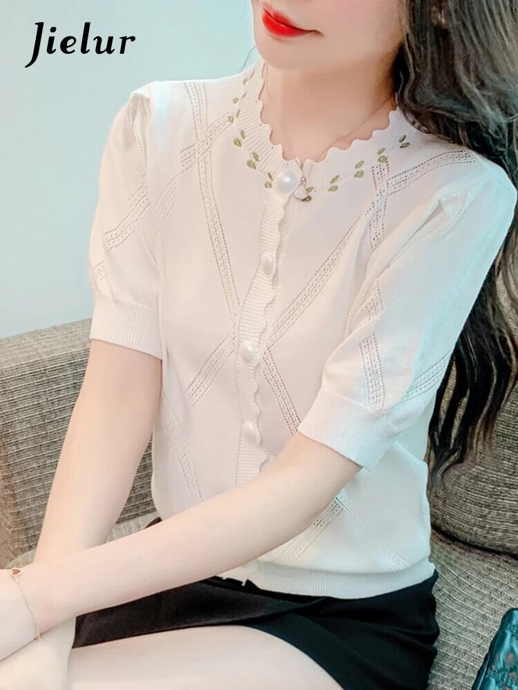 送料無料 Jielur 夏スリムウエスト女性シャツ無地甘いシャツ女性白ルーズトップ ホワイト 大人ガーリー スウィート キュート カジュアル サマー 夏物 ソリッドカラー AE12188787827899713363