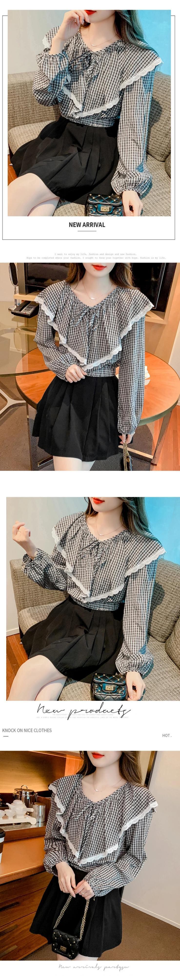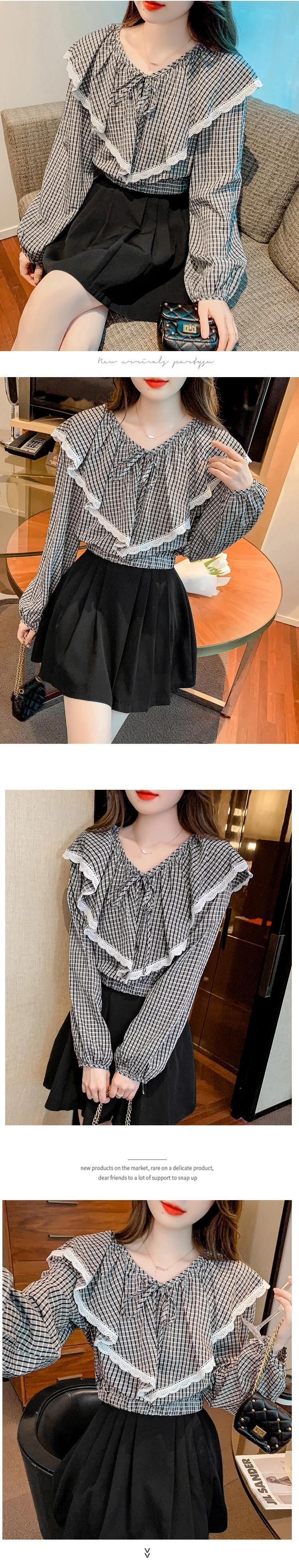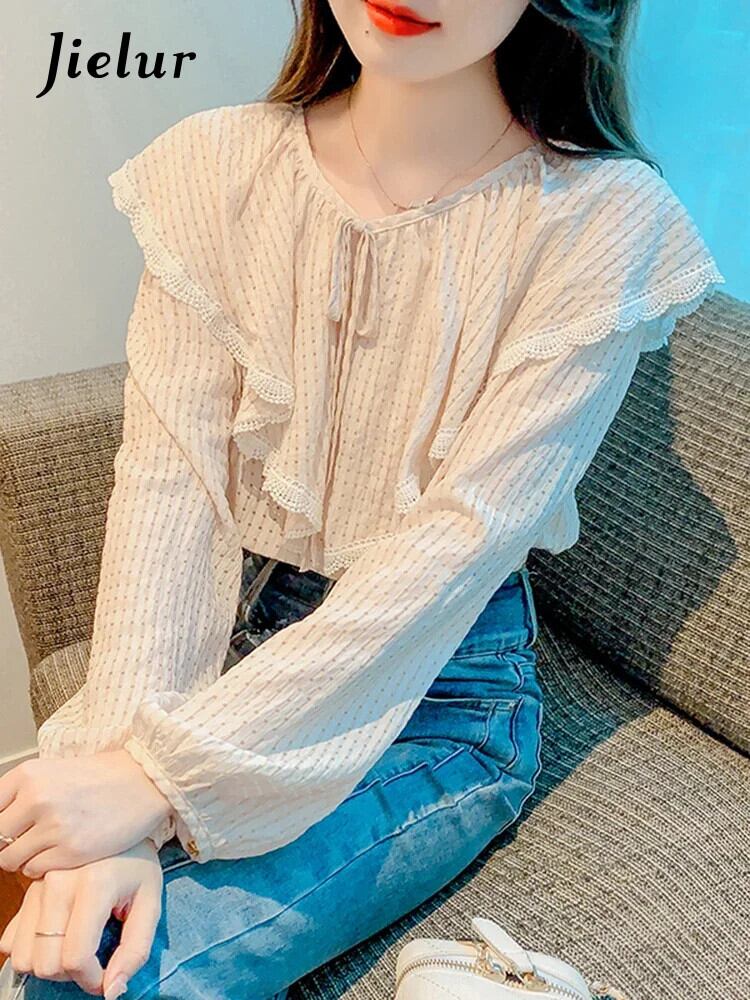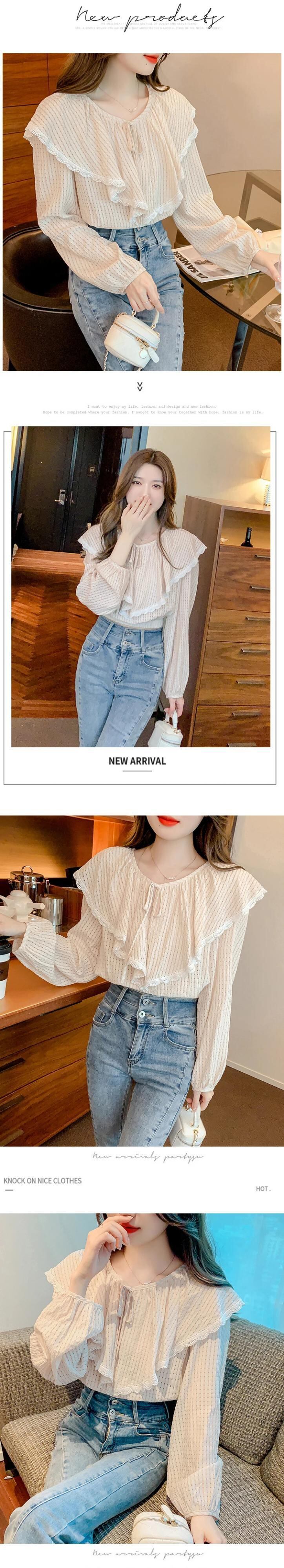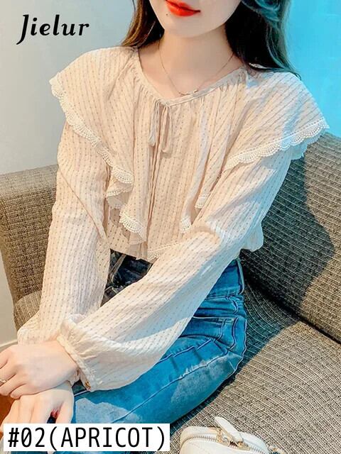 送料無料 Jielur 夏フレンチソリッドカラーの女性ブラウス甘いブラウス黒アプリコットルーズフリル V ネックトップ ブラック 大人ガーリー スウィート キュート カジュアル サマー 夏物 Vネック AE12188787866250598983