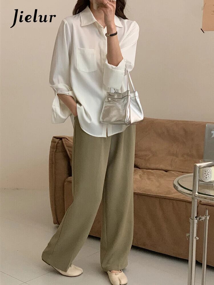 送料無料 Jielur シフォンシックなシャツ女性オフィスレディ白ブラウス夏黒シャツ原宿ポケットクリックトップス ホワイト ブラック かわいい サマー 夏物 会社 学校 通勤や通学にも AE1218878787282768414