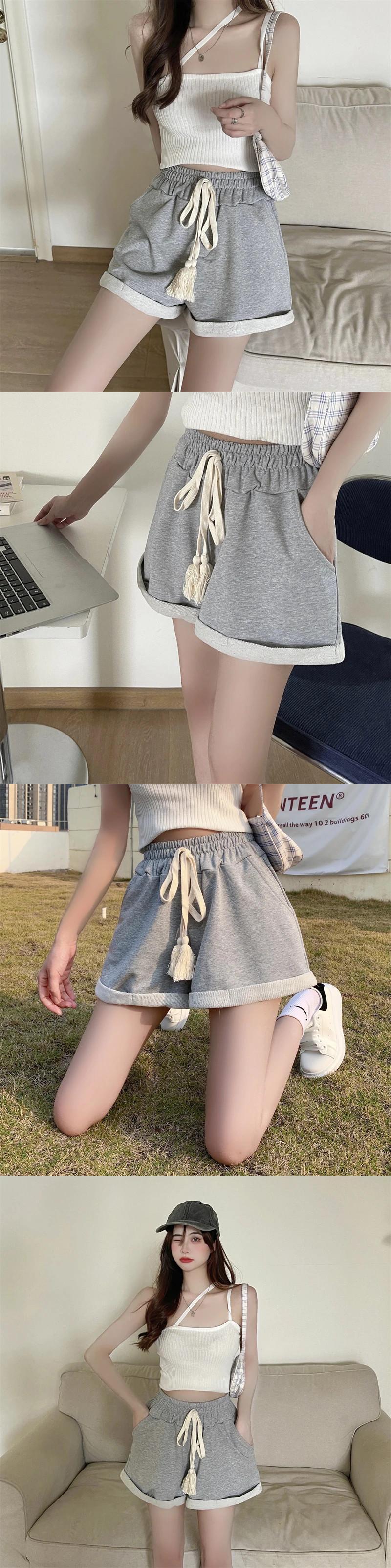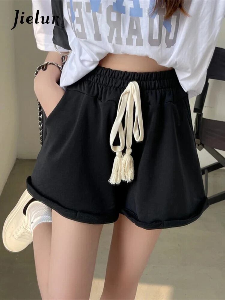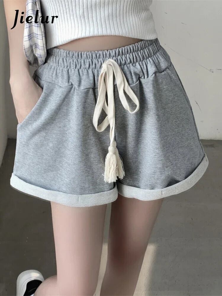 送料無料 Jielur 巾着ウエスト弾性グレー黒ショーツ女性 M-XL シンプルなスポーツショーツ 2022 夏ルーズワイドレッグショーツ ブラック エラスティック 伸縮 サマー 夏物 ブルマー ワイドパンツ AE12188787861645246712