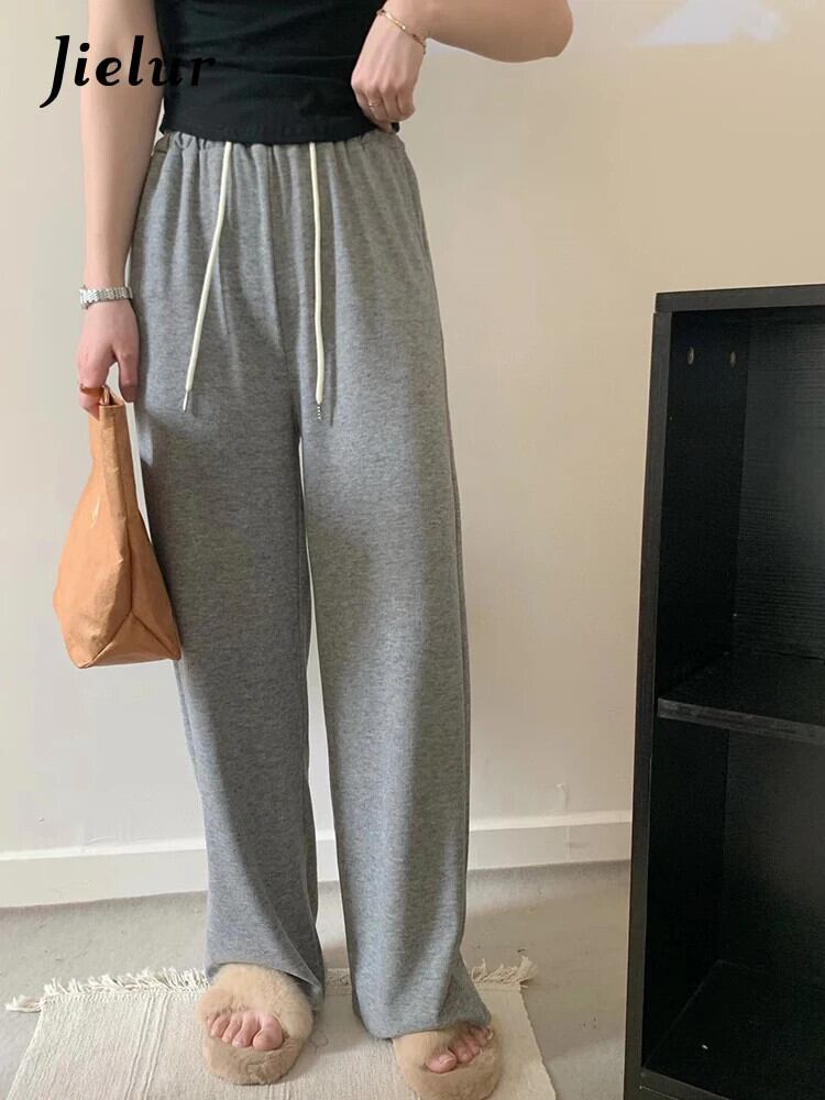 送料無料 Jielur 春スリムソリッドカラーワイドレッグレディースパンツストレートシンプルパンツ女性黒ダークグレーライトグレーパンツ ブラック スプリング 春物 ワイドパンツ AE12188787871981335781